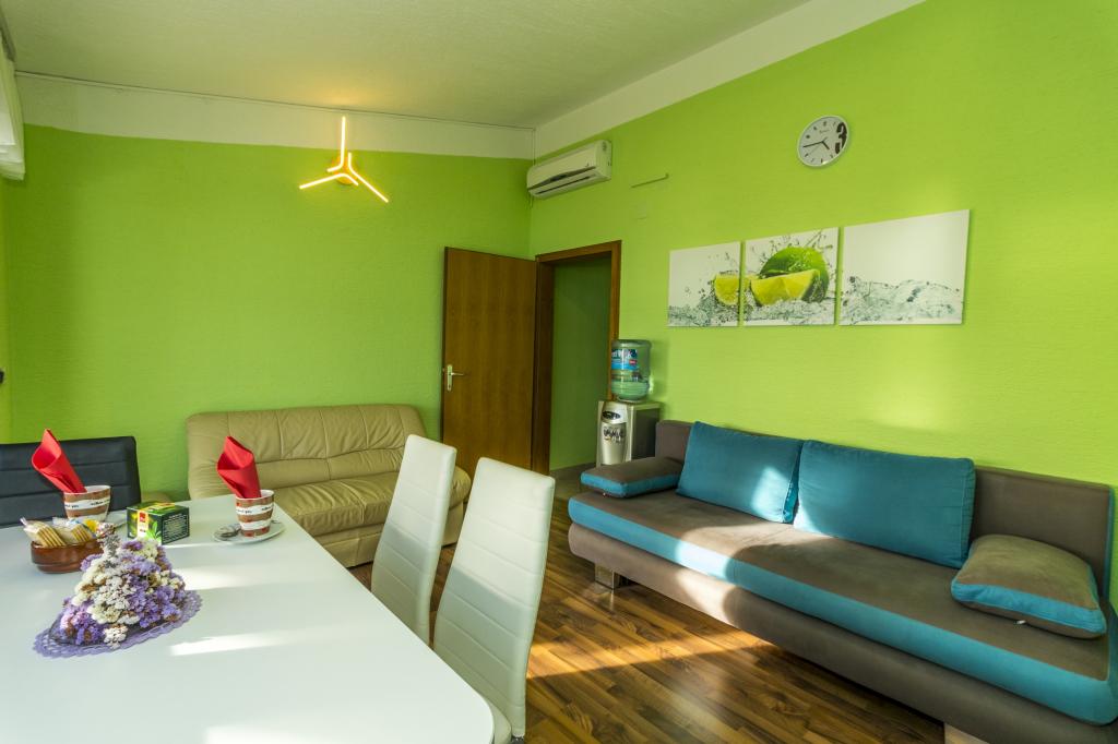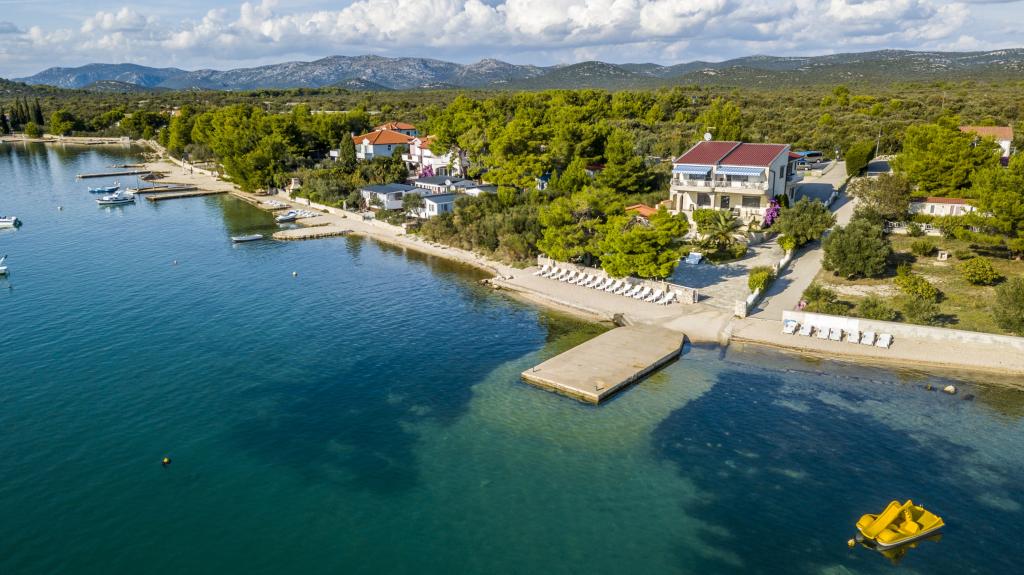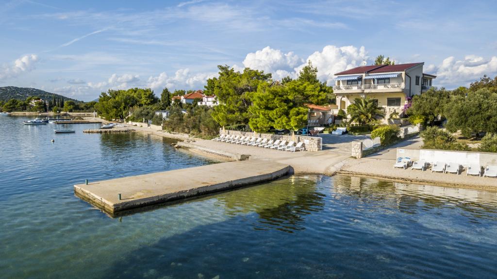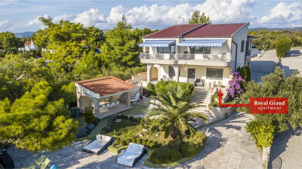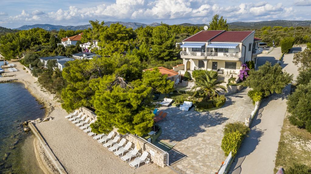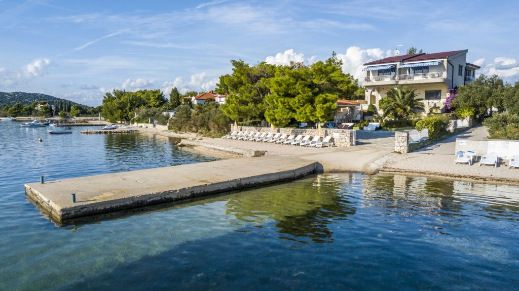Vila Punta Royal este situat lângă mare, într-un golf liniștit și are propria plajă cu pietriș. Marea este puțin adâncă și devine mai profundă atunci când merge departe de coasta, care este perfect pentru copii mici. In fata vilei este o grădină mediteraneană, unde vă puteți bucura de farmecul Dalmația și Marea Adriatică. Totul este într-un singur loc, nu trebuie să vă faceți griji cu depozitarea bunurilor dumneavoastră pentru a merge la plajă, deoarece apartamentul este la numai 15 de metri de plaja, care se află în fața Villa. internet wireless este gratuit și disponibil în întreaga Villa și întreaga plajă. Parcarea este lângă Villa și este gratuit pentru toți oaspeții noștri. șezlonguri și umbrele în grădina mediteraneană și la plajă sunt oferite pentru toți oaspeții noștri și sunt gratuite. Apartamentele sunt moderne și complet echipate pentru cazare familie. Ne sunt situate în mijlocul coastei Adriatice, astfel încât toate atracțiile locale din Dalmația aproape de noi. Bucurați-vă de vacanță, în timp ce pentru tine în Punta Villa Royal, întotdeauna cineva disponibil 24 de ore pe zi.