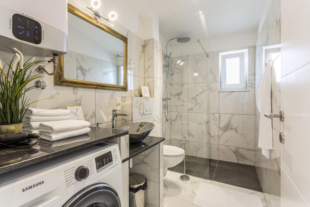 SeaHouse HAWK este un apartament de vacanță modern și echipat funcțional în Pisak, un oraș mic și fermecător de pe coasta Adriaticii! Acest spațiu este alegerea perfectă pentru cupluri, familii sau prieteni care doresc să se bucure de marea limpede, plaja frumoasă și atmosfera relaxantă a Dalmației. Locație și împrejurimi Situat la doar aproximativ 120 m de plajă, apartamentul oferă acces facil la mare și la toate facilitățile - restaurante, baruri și magazine se află la câțiva pași. Pisak este un oraș turistic frumos, cunoscut pentru marea sa limpede, plajele frumoase cu pietriș și atmosfera relaxantă, ideală pentru o vacanță. Despre spațiu - Apartament spațios cu un total de 2 dormitoare și o capacitate de până la 6 persoane (2 paturi duble + canapea extensibilă). - Bucătărie și living complet utilate pentru un sejur confortabil - Toaletă laterală cu mașină de spălat - 2 aparate de aer condiționat (gratuit) și ventilatoare de tavan în camere - Terasă mare de 35 m², ideală pentru cafeaua de dimineață sau socializarea de seară - Loc de parcare privat gratuit