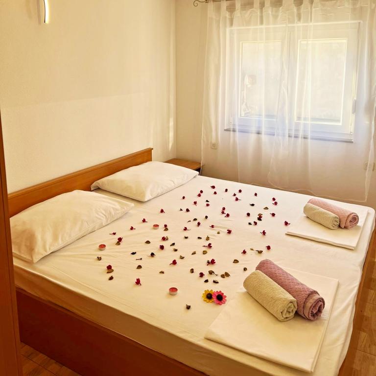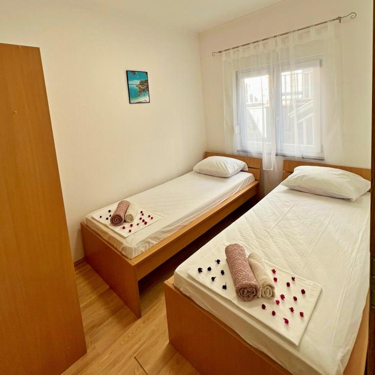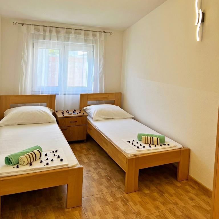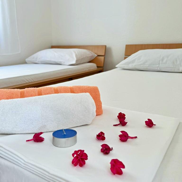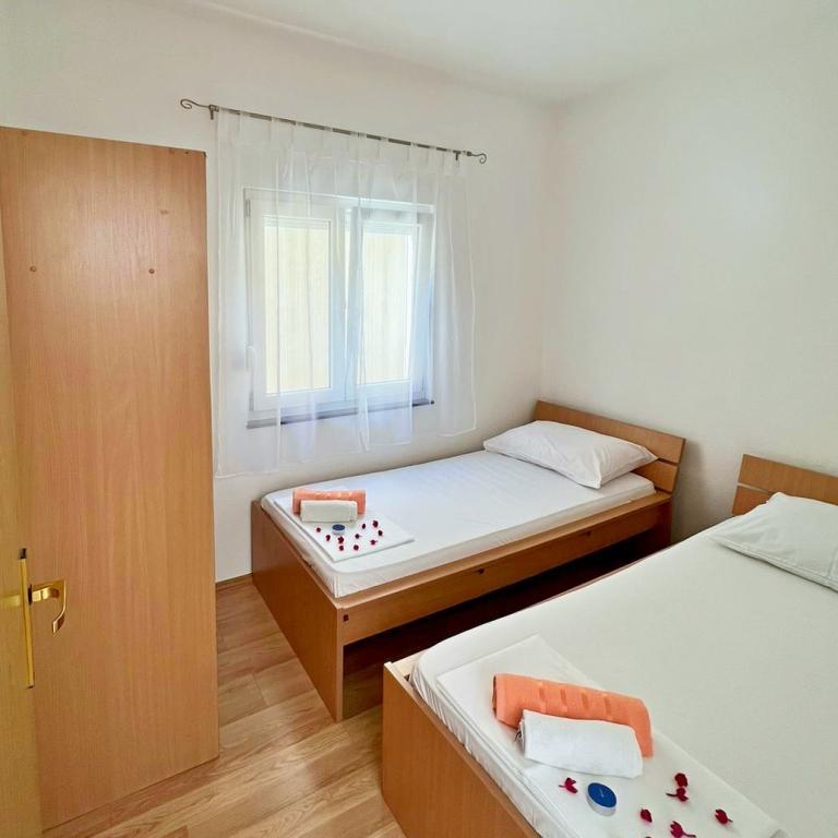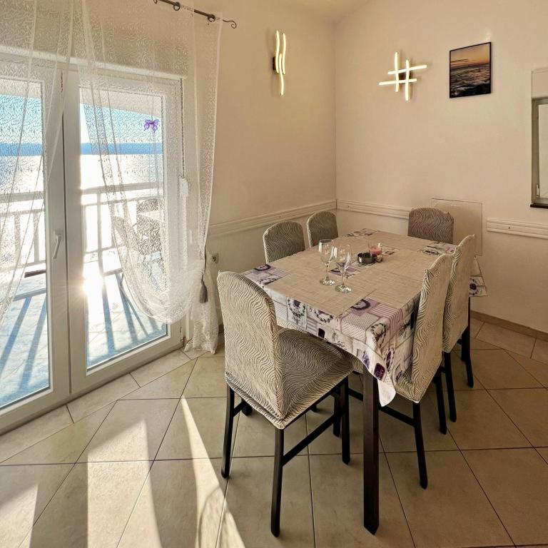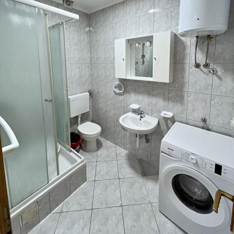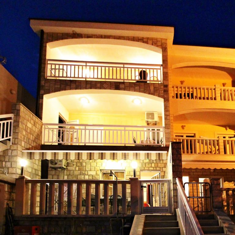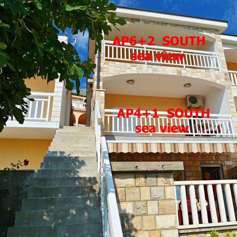 Avem trei apartamente: >> APARTAMENT A6+2 la etajul doi - 3 x dormitoare, 1 x living și bucătărie cu sufragerie, 1 x baie cu toaletă, 1 x toaletă, balcon mare cu vedere frumoasă la mare!! Aer condiționat, mașină de spălat, mașină de spălat vase, cuptor cu microunde, internet wifi. >> APARTAMENT A4+1 la primul etaj - 2 x dormitoare, 1 x living și bucătărie cu sufragerie, 1 x baie cu toaletă, balcon mare cu vedere frumoasă la mare!! Aer condiționat, mașină de spălat, mașină de spălat vase, cuptor cu microunde, internet wifi. >> APARTAMENT A4+1 la primul etaj - 2 x dormitoare, 1 x living și bucătărie cu sufragerie, 1 x baie cu toaletă, terasă fără vedere la mare. Aer condiționat, mașină de spălat, mașină de spălat vase, cuptor cu microunde, internet wifi.