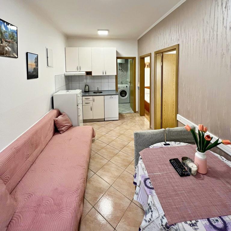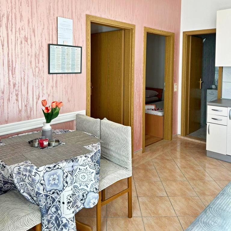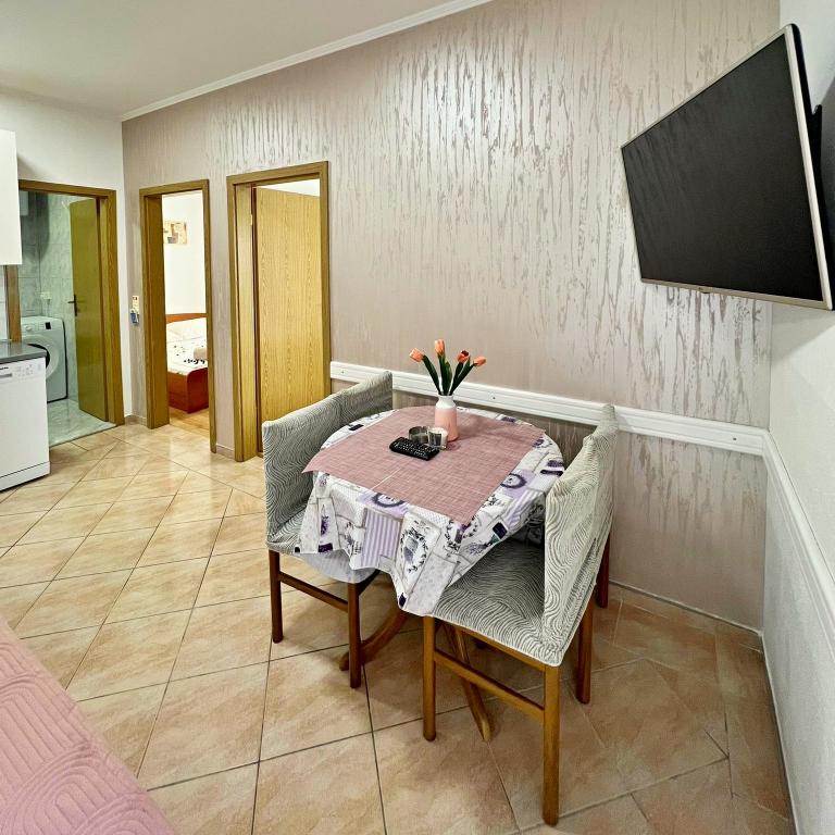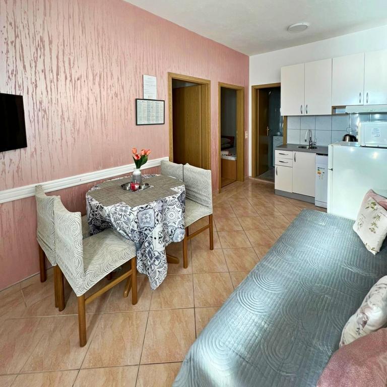 Taxa de rezidenta este inclusa in pret.Apartament curat, spațios, bine echipat, cu o vedere frumoasă la mare. Apartamentul este aproape de plajă și de magazin alimentar. Proprietarii sunt foarte amabili. Îl recomand tuturor celor care își doresc o vacanță liniștită, dar activă!