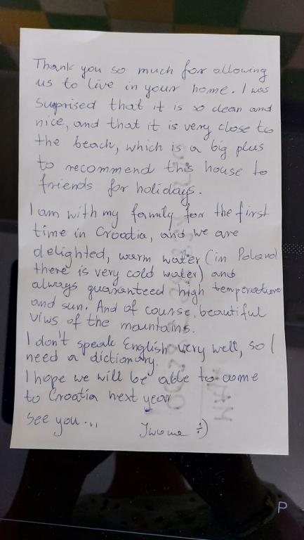 Apartamentul a fost excepțional de curat. Excelent echipat. Frumos decorat. Priveliștea de la balcon a fost superbă! Plaja este la 3 minute distanță, dar poteca este pe scări și o ușoară urcare. Am fost cu un copil de doi ani și nu a fost nicio problemă pentru noi. Plaja și marea sunt cele mai frumoase posibile. Toate laudele pentru apartament și Pisak!