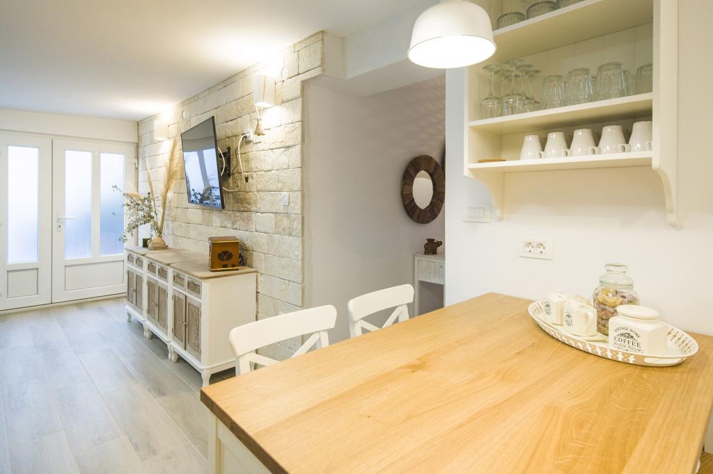 Obișnuiam să avem două familii numeroase cu copii într-un apartament mare 8 + 1. Descrierea se potrivește, localul frumos decorat, decorat cu gust, curat cu echipament practic. Suntem foarte bineveniți, mașină de spălat vase + tablete, 2 frigidere mașină de spălat, cuptor și TV pentru copii și jocuri. Aveam la dispoziție și prosoape, pe care ne-a schimbat-o gospodina după câteva zile. Chiar nu ne-a lipsit nimic în bucătărie - echipament complet. Locație excelentă - aproape de pretutindeni: plajă și restaurant, magazin alimentar chiar în fața casei, fructe, legume la câțiva metri mai sus pe stradă. Seara, o ședere plăcută cu băuturi și bere la barul de pe plajă sau pe terasa cu vedere frumoasă la mare. Am văzut chiar și delfini de pe terasă de mai multe ori. Plaja este curată cu pietre mici rotunde, apa este limpede și plăcută. Am finalizat o excursie cu rafting pe râul Cetina, o croazieră pe o navă de croazieră, am urcat castelul din Omiš cu o priveliște frumoasă, conacul Kotišina și Altarul Fecioarei Maria. Într-o zi am traversat lacuri frumoase: Lacul Albastru, Roșu și Verde. Puteți face baie numai în Lacul Albastru. Doamna Marica este foarte drăguță, caracteristică și primitoare. Gazda ne-a ajutat din nou de bunăvoie cu pește la grătar. O ședere grozavă. Recomand din suflet.