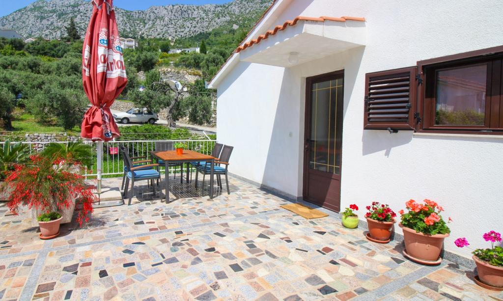 Apartamentele Kosovic II sunt situate pe o proprietate familială din Podaca, cunoscută pentru marea sa tradiție turistică. Distanța de la mare și plajă este la numai 10 metri distanță de mulțime și autostradă, ceea ce face această locație foarte interesantă pentru familiile cu copii mici. Plaja este plină de pietricele cu multă umbră naturală care face pinii. De-a lungul plajei se află o promenadă nou construită, lungă de 5 km, ideală pentru plimbări de seară și relaxare, dar și pentru turiștii care preferă o vacanță mai activă, cu alergare, patinaj și ciclism. Toate cele 3 apartamente au intrare separată, aer condiționat și WIFI. Capacitatea apartamentului este de 14 paturi și 2 paturi suplimentare. Cinci locuri de parcare sunt asigurate în proprietatea din jurul casei, în locația designată. Proprietatea are peste 200 de măslini și un restaurant liniștit Mendi, administrat de o familie, cu o tradiție de peste 35 de ani. Restaurantul la grătar și fructele de mare oferă o varietate de pizza.