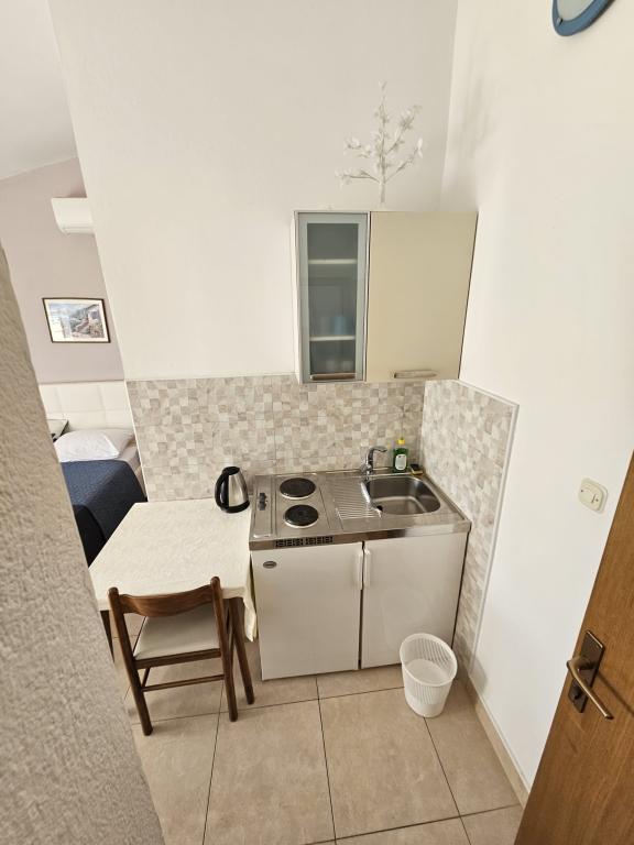 Casa este situată în centrul orașului Podaca, într-o locație atractivă, situat pe loc de joaca si parc pentru copii. Vizavi de casa este o stație de autobuz, restaurante, magazine, piete. Pentru cei care doresc să se relaxeze și să aibă un moment bun, casa noastră este alegerea ideala!