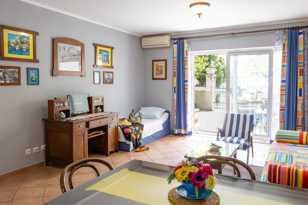Taxa de rezidenta este inclusa in pret.Apartamentul este minunat. Se poate vedea totul în fotografii. Este cu adevărat un vis devenit realitate, mobilat în stilul trecutului îmbinat cu cel al prezentului. Camere foarte atent amenajate, toate suficient de mari și am fost impresionat de detaliile care fac apartamentul cu adevărat special. Deoarece este la parter, este frig chiar și fără a folosi aerul condiționat, deși este și acesta disponibil. Doamna Ana, proprietara, este o gazdă minunată și cuvântul ei este valabil. Dacă aveți nevoie de ceva, ea găsește întotdeauna o soluție. Distanțele care sunt scrise sunt și ele adevărate. Apartamentul este curat. Plaja este, de asemenea, minunată, cu umbra naturală a pinilor. Apa este cristalină, verde-albăstruie. Pe scurt, îl recomand.
