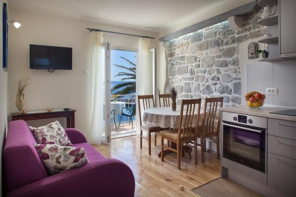 Apartamentul este situat în cea mai frumoasă parte din Podgora, portul vechi, cu o frumoasa priveliste de port și insulele Hvar, Korcula și peninsula Peljesac. Mobilate confortabil, cu doua dormitoare, o bucatarie complet utilata, living, baie, balcon și o terasă spațioasă înconjurată de copaci vechi. Parcarea este prevăzută și inclusă în preț. În apropiere există restaurante tradiționale cu produse alimentare de primă clasă.