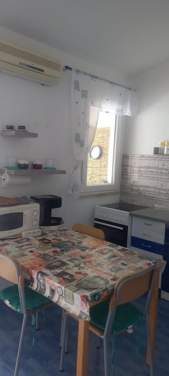 În liniștitul golf Čaklje (Podgora) se află o casă cu apartamente (ČAUSEVIĆ) în primul rând de la mare. Plaja poate fi accesată traversând drumul principal - în 1 minut. Apartamentele de la etajul doi au fost construite în 2005, iar apartamentul de la primul în 1999. Toate cele trei apartamente au terase mari - aproximativ 12 m2. Apartamentele au aer condiționat. Ofertă specială casă de weekend a-4. Potrivită pentru cupluri tinere dacă vă place atmosfera antică. Există case în zonă care au peste 100 de ani. Așezarea se numește Vruja, iar numele casei este Letišče. Este asigurată parcare pentru două mașini.