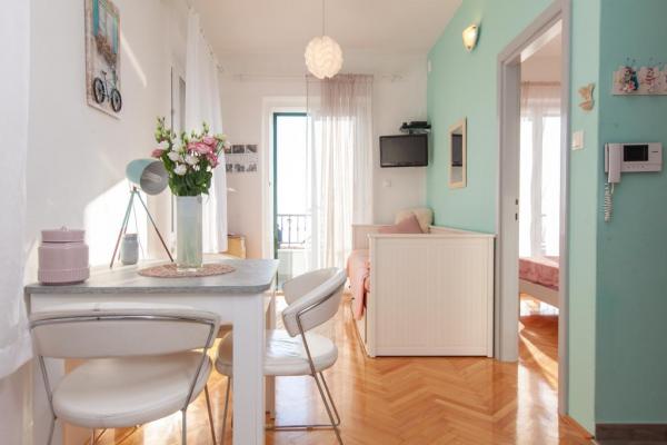 Apartamente Ivandić Podgora, situat în centrul de Podgora, Prijeđel Porat, la malul mării. Facilitatea este situat de-a lungul coastei, cu vedere frumoasă și complet deschis la mare și insule.