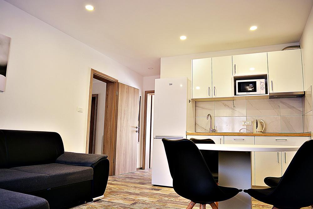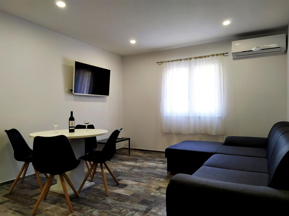 Apartamente Jure oferă 3 apartamente: apartament A6 1 pentru 7 persoane, A2 2 pentru 4 persoane și S2 pentru 2 persoane. Toate apartamentele sunt mobilate și mobilate modern, confortabile și accesibile și au tot ceea ce ai nevoie pentru vacanța ta completă. A6 1 are 140 m2, cu 3 camere și un living mare și o canapea extensibilă. Este extrem de potrivit pentru familiile cu copii. Toate apartamentele au: bucătărie, sufragerie, baie, parcare, Wi-Fi, aer condiționat, în timp ce cel mai mare apartament A6 1 are aer condiționat în fiecare cameră și are 4 băi. Animalele de companie nu sunt permise, nu se fumează în apartament (balcon și camere exterioare - permise). Vă stăm la dispoziție pentru orice întrebări sau rezervări.