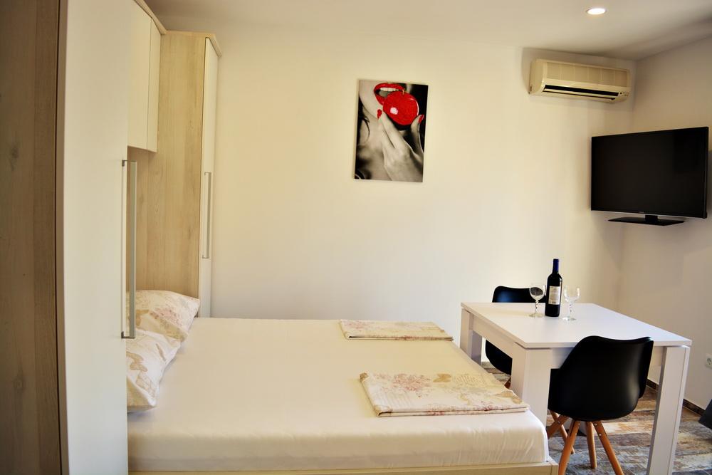 Am traversat aproape toată Croația până am ancorat în Podgora, care ni se potrivește datorită locației și dimensiunii satului. Am încercat atât hoteluri, cât și cazare privată până am dat peste această casă de apartamente din Jure. Am fost acolo de zece ori anul acesta. Am fost cazați în 2+2, 2+1 și într-un studio pentru două persoane, unde există opțiunea unui pat suplimentar pentru un copil. Apartamentele sunt complet utilate, nu ne-a lipsit nimic, este disponibilă chiar și o mașină de spălat, ceea ce nu este standard peste tot. Proprietarul și familia sa sunt grozavi... vor sfătui, vor ajuta. Recomand să încercați.
