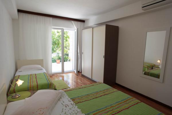Apartamentele sunt situate într-o parte liniștită din Podgora, numai 300-m de mare. Langa există un loc de joacă împrejmuită, pe care oaspeții pot folosi gratuit. Apartamentele au o terasă mare cu vedere la mare și un grătar cu gaz. Acestea sunt frumos decorate și toate au aer condiționat, TV, ceainic electric, filtru de cafea, prajitor de paine.