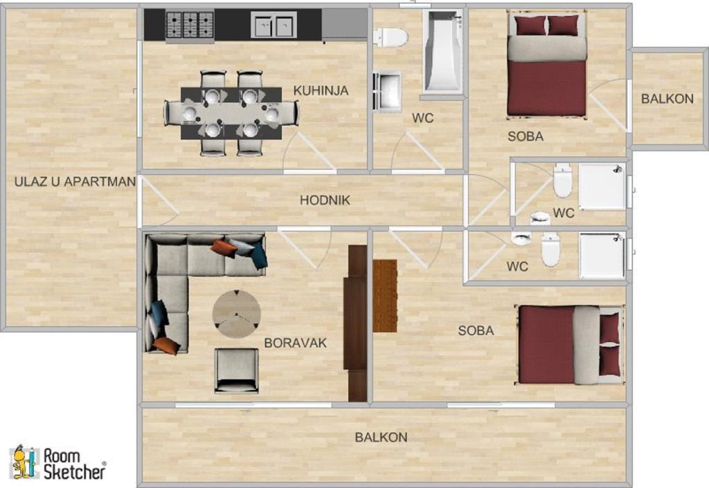 Apartament pentru patru persoane, cu două paturi suplimentare (80 m2)