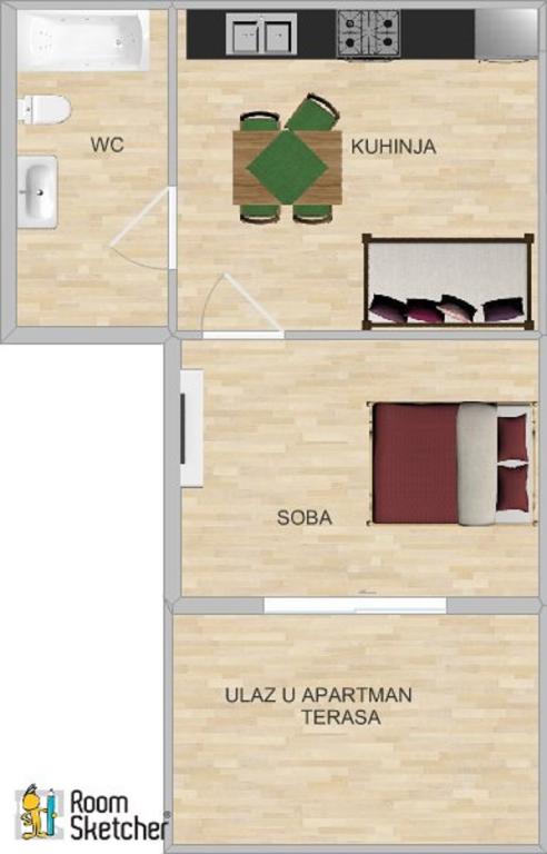 Apartament pentru două persoane, cu două paturi suplimentare (35 m2)