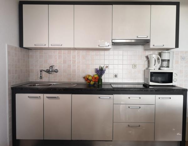 Apartament grozav, foarte frumos, bine mobilat, curat, grătar cu o grădină mică, dar frumoasă, parcare pe proprietate, bucătărie complet utilată. Cea mai bună parte este terasa mare cu vedere frumoasă la mare. Până la magazin la aproximativ 100 de metri, literalmente un minut pe jos. La fel cu plaja. Proprietarii au fost foarte drăguți, prietenoși, foarte de ajutor și îngrijiți de oaspeții lor. Vă recomand!!!