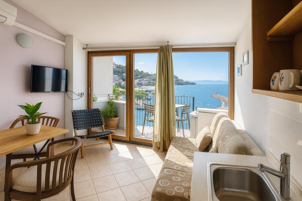 Frumos, un apartament frumos. proprietari noi, cu mai multe detalii alese cu grijă!, minunat și prietenos, locație mare, terasa in plus, cu o vedere frumoasă la mare și port. Cel mai bun loc pentru vacanta în Podgora. Vă recomandăm tuturor apartamentelor un pic !!!