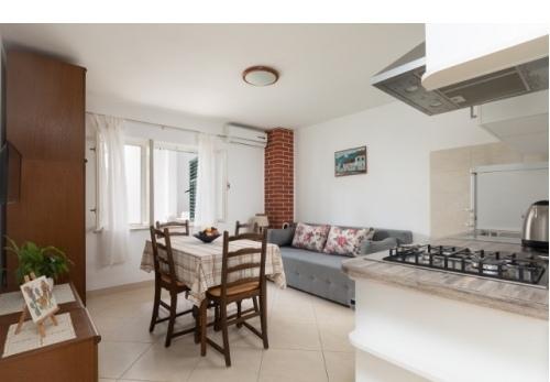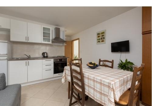 App 2+1 Vanja este situată la parterul casei cu două terase de utilizare, oferind vedere la mare. Are un dormitor cu pat matrimonial, un pat suplimentar in living, 2 bai, o bucatarie. Proprietatea este situata al doilea rand la mare, pe o strada linistita, la 5 minute de mers pe jos de promenada si la 7 minute de mers pe jos pana la plaja. App A4 este situat la primul etaj al casei, are 2 dormitoare, balcon cu vedere la mare, baie, bucatarie si living, terasa. Proprietatea este situata al doilea rand la mare, pe o strada linistita, la 5 minute de mers pe jos de promenada si la 7 minute de mers pe jos pana la plaja.