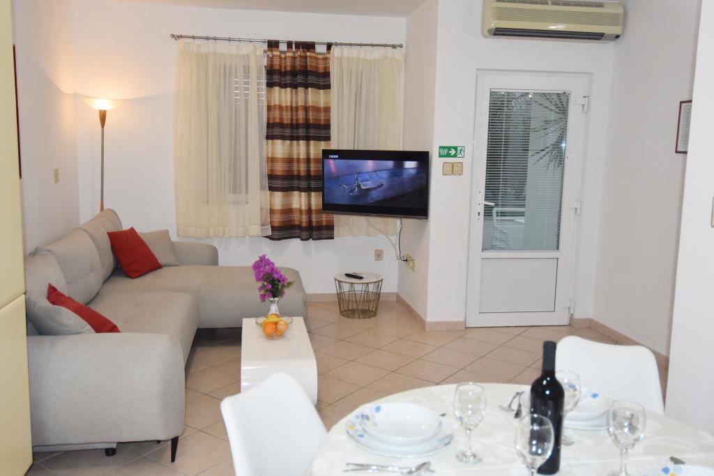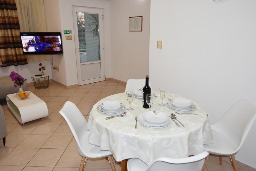Vila NADA Podgora este situată pe o stradă liniștită la 100 m de mare și centrul orașului, aproape de restaurante, magazine și cafenele, cu parcare privată, internet gratuit, apartamente confortabile vă vor oferi o vacanță de neuitat. Apartamentul A-4 + 1 este situat la parterul vilei și este format din două dormitoare duble cu băi private, mașină de spălat, bucătărie cu spatulă, cuptor, frigider și congelator, mașină de spălat vase, cuptor cu microunde, filtru de cafea, cameră de zi cu canapea extensibilă pentru o persoană, AER CONDIȚIONAT, SAT TV, WI-FI, seif, terasă-vedere la mare și grătar în aer liber și parcare privată. Apartamentul A-2 + 1 este situat la parterul vilei și constă dintr-un dormitor dublu cu baie și mașină de spălat, bucătărie cu spatulă și cuptor, frigider, filtru de cafea, canapea pentru o persoană, TV prin satelit, aer condiționat, WI -FI, vedere la terasă-mare, grătar în aer liber și parcare privată