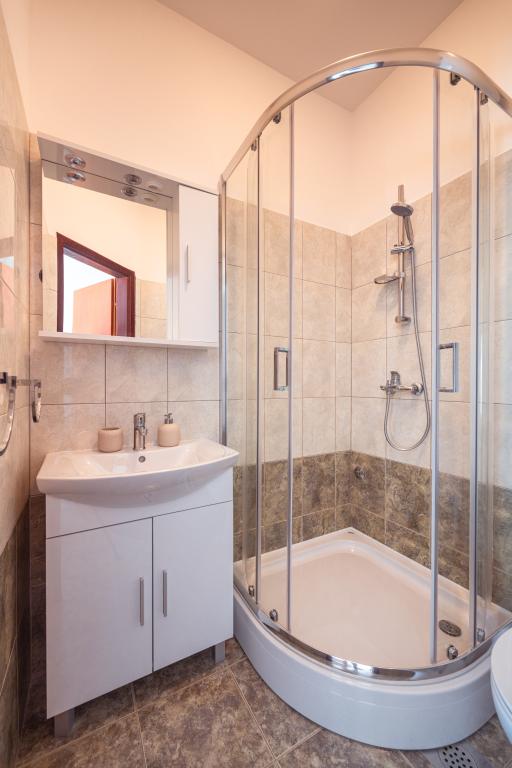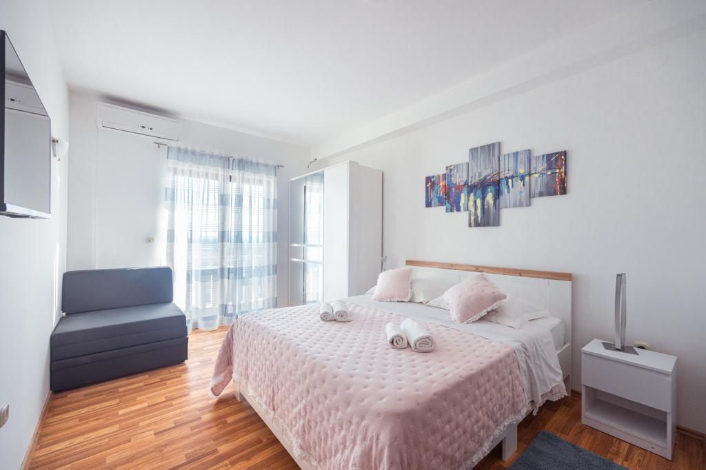 Apartamente complet mobilate Baki este situat într-un loc liniștit Podstrana, la numai 8 km de Split. Apartamentele sunt dotate cu TV LCD / SAT și aer condiționat, care este inclus în preț, precum și taxe locale. Imobilul este situat la 30 m de plajă și la mare, pentru că metroul nu trebuie să traverseze drumul. La parter se află un magazin de RIBOLA și ATM.
