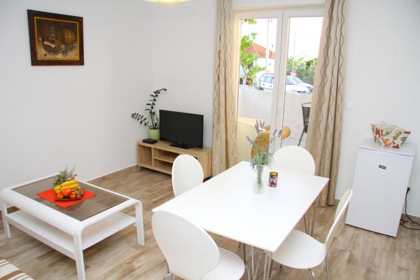 Marca apartamente noi 200m. de la mare și plaže.Nalaze la parter cu 150 de milioane se află rutier mare terasama.Glavna sau autostrada. pentru a permite o atmosferu.Apartmani pașnice și relaxante constă dintr-un living, bucatarie, baie si dormitor cu un pat dublu și un pat de o persoană, iar al patrulea pat este în sobi.Kuhinja viu este dotat cu toate aparatele care va îndeplini toate dvs. potrebe.Ispred fiecare apartament are o terasă mare cu o persoană mai mult stolom.Svi avea opțiunea de a utiliza fructe si legume ecologice din vrta.Parking nostru apropiere este privat și se află în nivelul de apartament, fără nici o obstrucție care este perfect pentru persoanele cu invaliditetom.Ambient este ideal pentru familii cu copii și grupuri de prieteni.