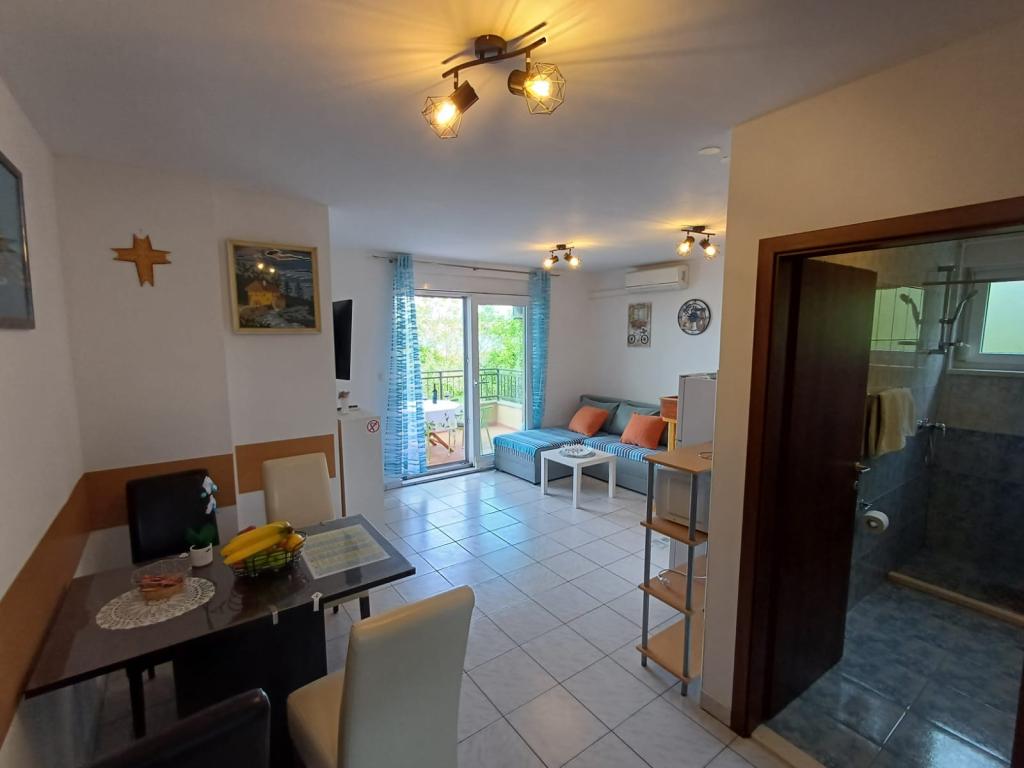 Taxa de rezidenta este inclusa in pret.Mediu foarte frumos, apartament curat, aranjament foarte bun, gospodine frumoase, prietenoase „băutură delicioasă de bun venit” Malul mării este pietriș de aproximativ 15 m lățime, în mare după 3-4 m nisip se adâncește lent. Totul se potrivește descrierii. Nu pot recomanda decât!