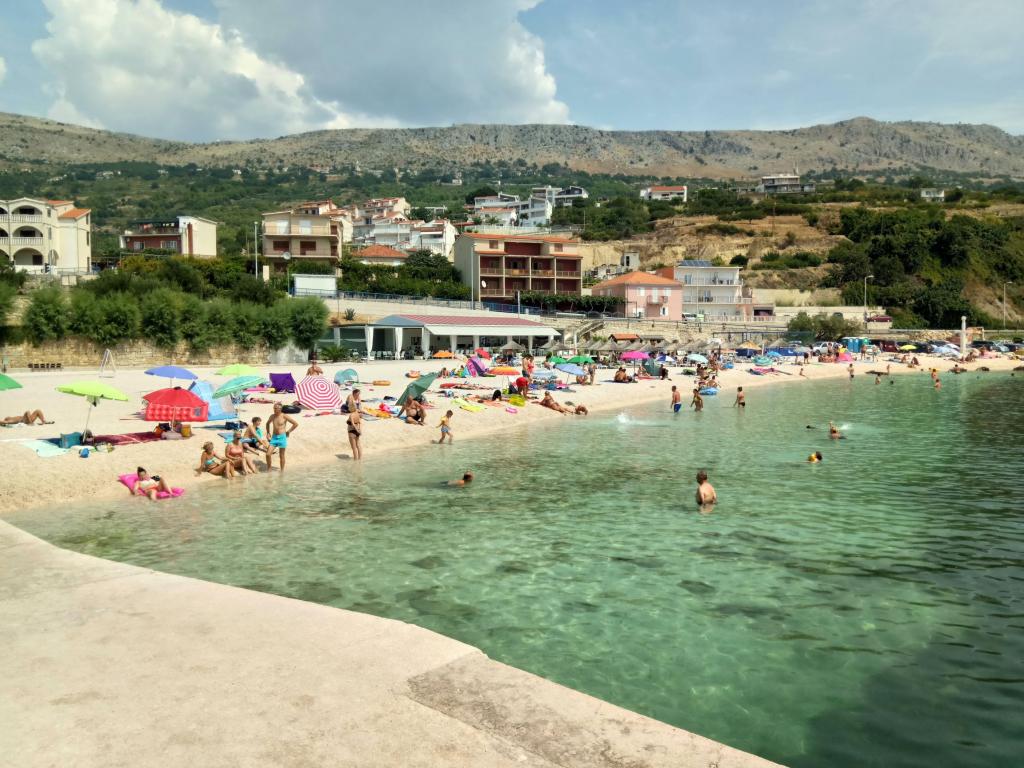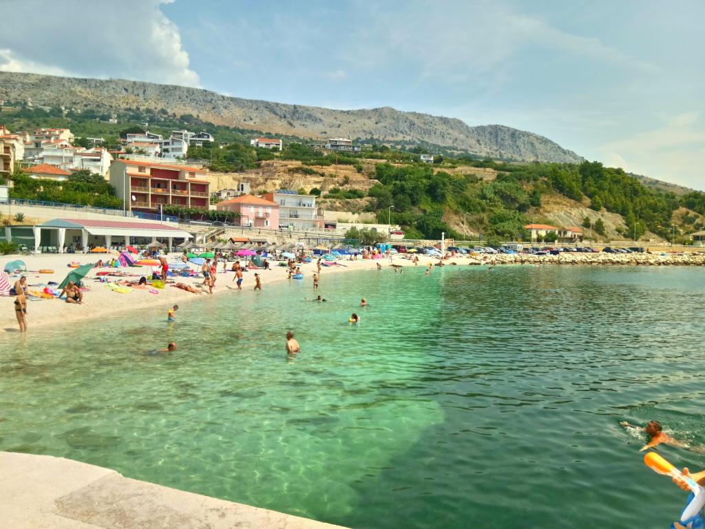 Casa este situată într-o zonă liniștită din Podstrana. Distanta de la plaja este de 50 m. Pe plajă există două cafenele și fast-food. Aproape de casa este un restaurant, farmacie, supermarket și o brutărie. Casa are un lot mare de parcare si gradina. Avem un mic și un grătar mare. Casa este potrivit pentru vacanțe de familii mari cu mulți copii.