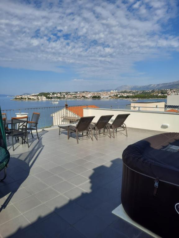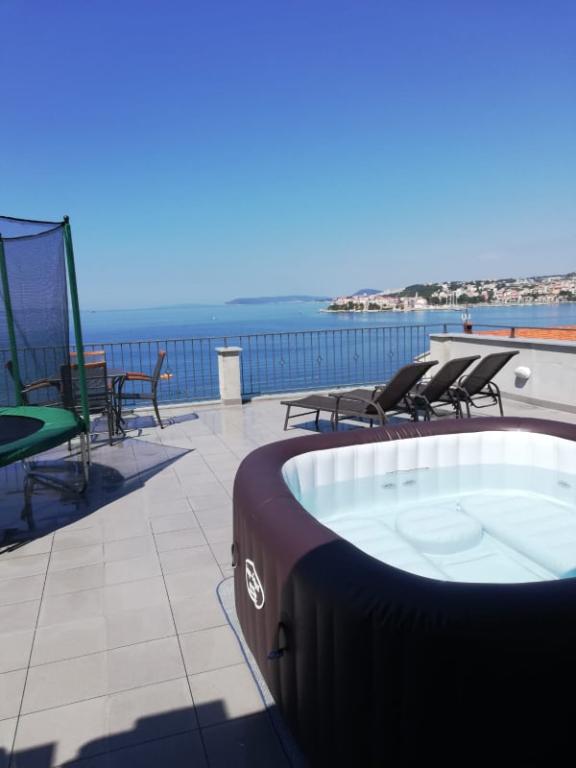 Apartament mare, luxos, curat, cu vedere frumoasă la mare. Apartamentul este complet utilat. Există aer condiționat în fiecare cameră. Are doua terase. Unul este intern, iar celălalt este extern. Fiecare apartament dispune de gratar si jacuzzi, dus exterior, sezlonguri. Toate apartamentele au vedere la mare. Terasa de pe acoperiș are cea mai frumoasă priveliște. Plaja este aproape de 2 min. pe jos. Există mai multe restaurante în apropiere, pe plajă. În imediata apropiere se află băcănie, o farmacie, o brutărie... Gazdele Ivan și Mário sunt amabili, grijulii și foarte ospitalieri. Ele pot rezista chiar și celor albastre din cer. Suntem încă în legătură. Am fost aici de 5 ori. Am fost aici pentru prima dată în 2018 și suntem bucuroși să revenim. Ne simțim ca acasă aici
