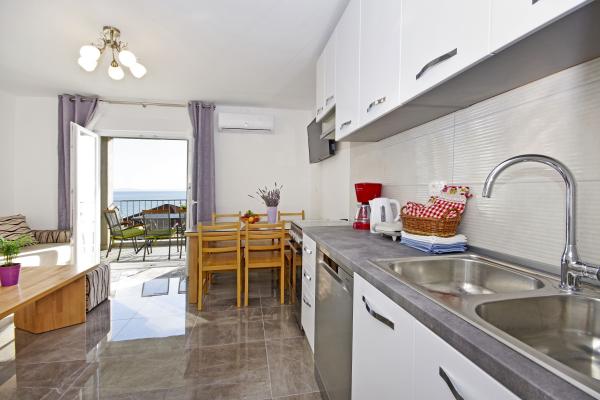 Apartament foarte grozav. Curat, ordonat, plaja se afla la 2 minute de mers pe jos, unde este o plaja mica linistita (pietrisca mica, incet adancindu-se) si bineinteles privelistea este superba. Ivana este extrem de directă, de ajutor, de amabilă și arată că îi întâmpină cu adevărat oaspeții din suflet. Este situat într-o locație foarte bună, aproape de magazine, restaurante și vânzători de pe coastă, saloane de înghețată, iar la 2 plaje mai mari se poate ajunge în câteva minute de mers pe jos. Ne-am simțit pur și simplu fantastic, cu siguranță vom reveni! Il recomand cu caldura tuturor, am fost cu 2 copii mici.