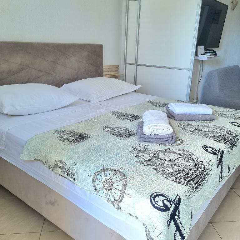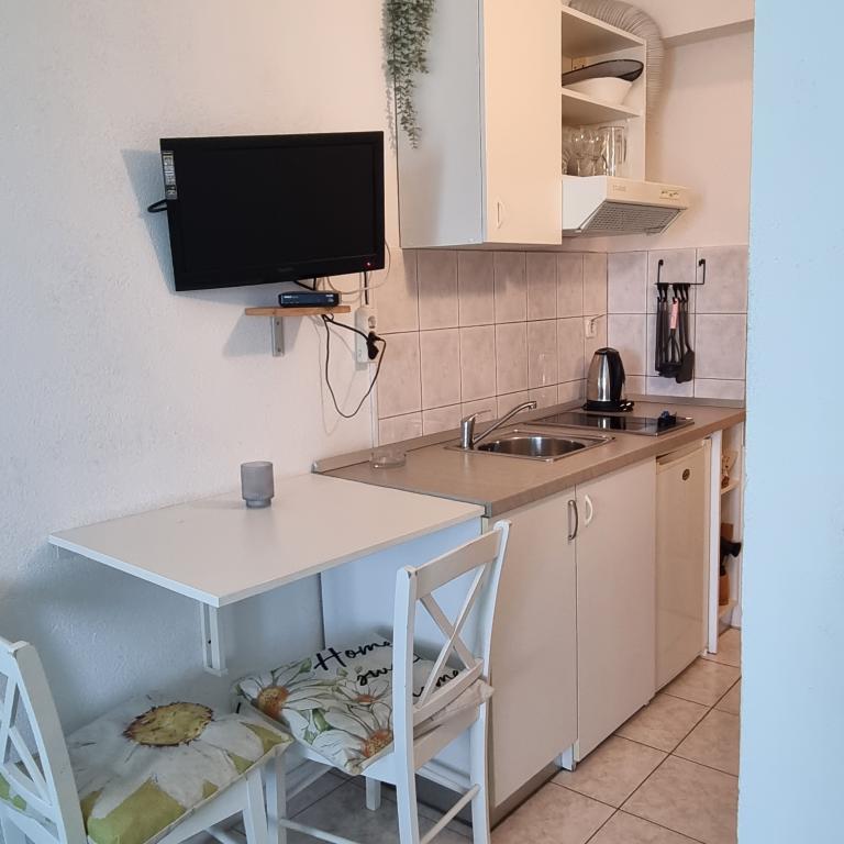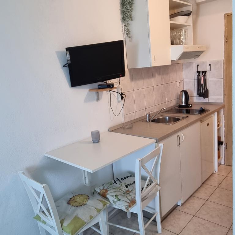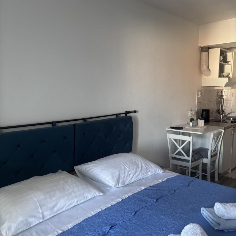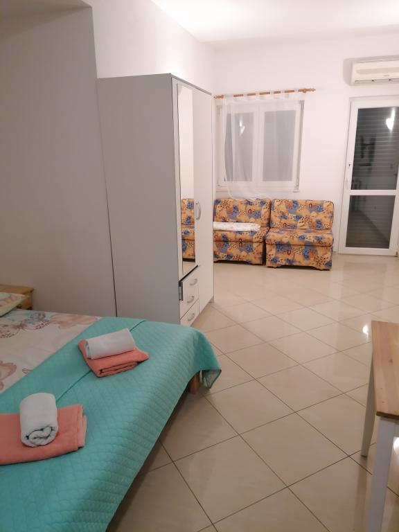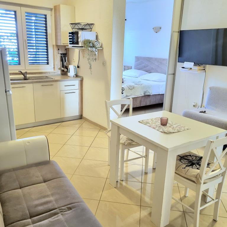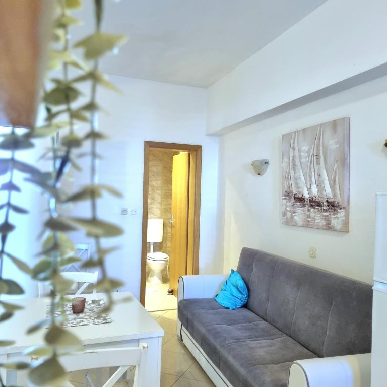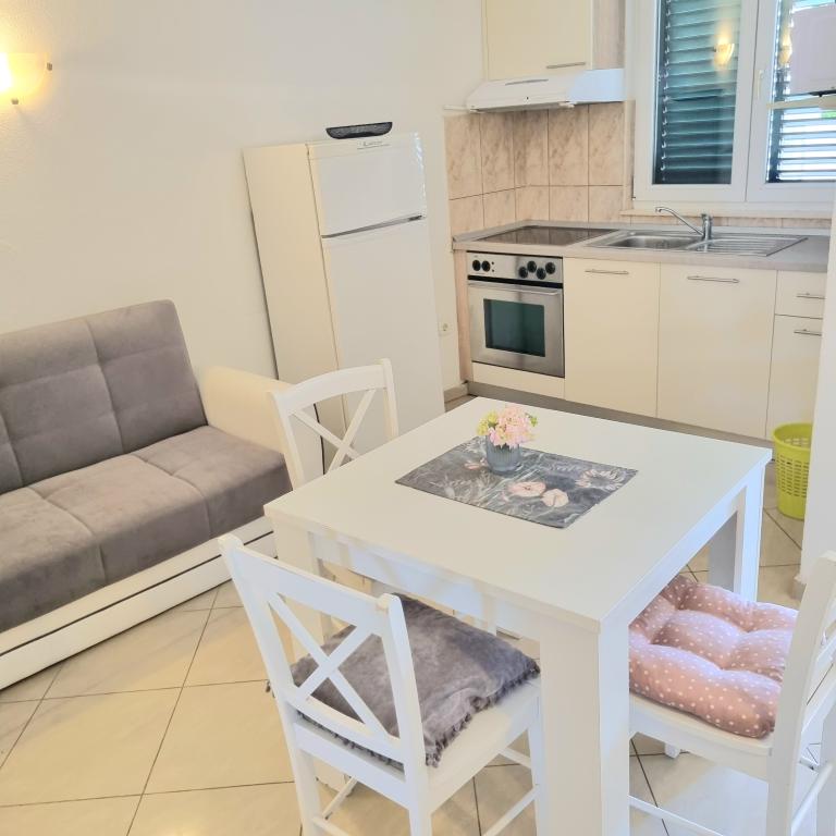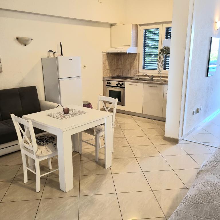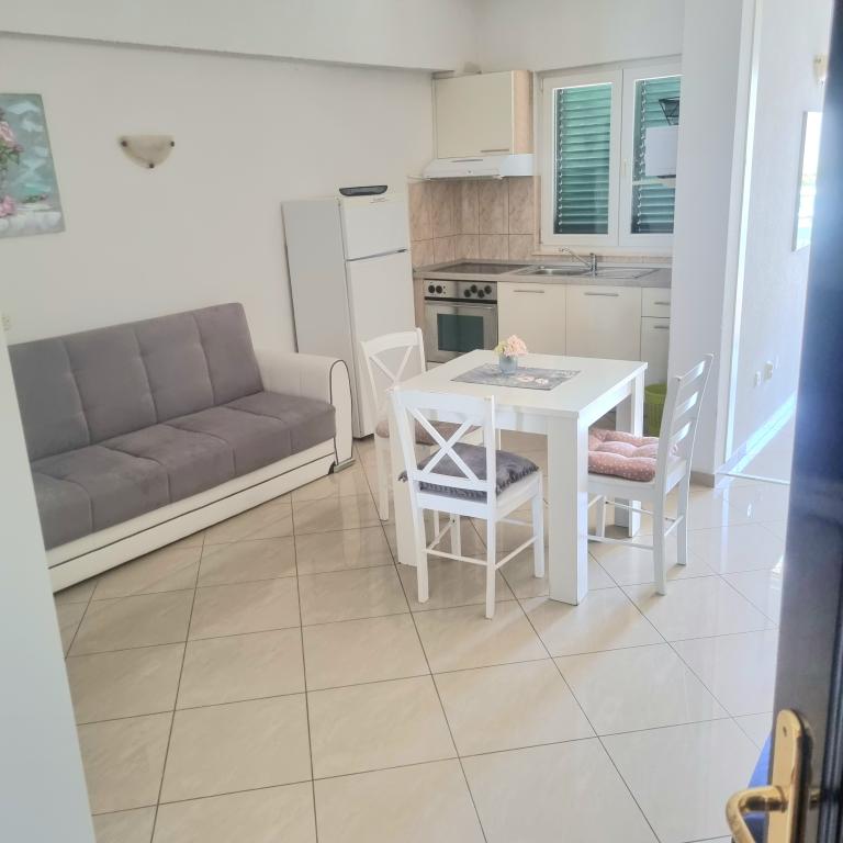 Gazdele sunt oameni foarte amabili și primitori, mereu dispus să vină în întâmpinarea oaspeților, consultanță și asistență în caz de orice problema. Apartamentul are o locație excelentă. Este o scurtă plimbare de plajă. Curat si utilat cu tot ce este necesar. La plajă (în prețul cazării) sunt disponibile șezlonguri și umbrele de soare. Barul este lângă plajă, unde ar putea sta mereu în stare de repaus, cu cafea. Magazin alimentar, la o scurtă plimbare de la apartament, oficiu postal - birou de schimb valutar se află în apropiere. Valoarea totală a vacanta de foarte mare succes, deoarece aici, prin urmare, placerea de a reveni în fiecare an. :-)