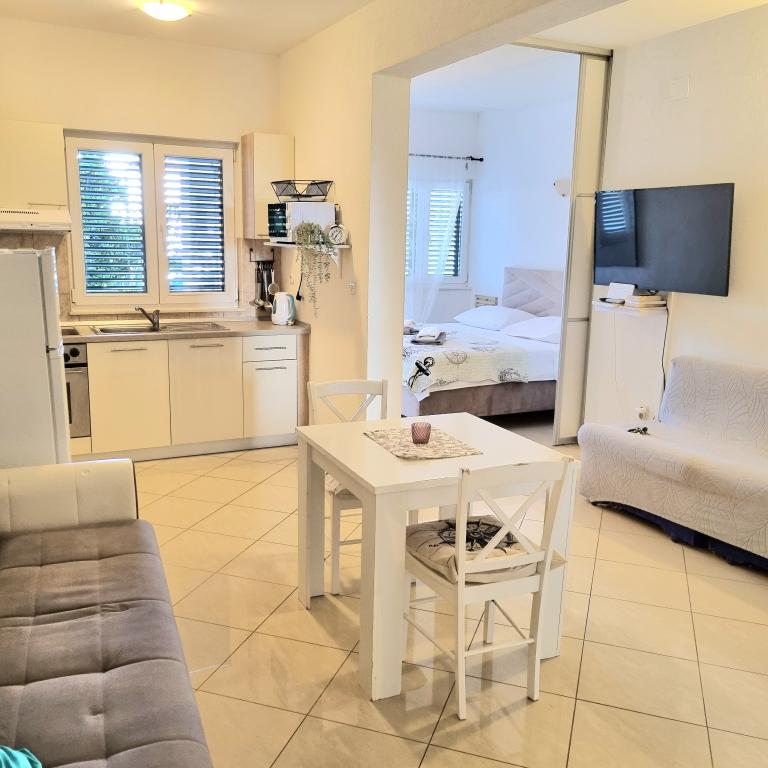 Am vizita aici în fiecare an frumos, gazde calde, foarte prietenos. Locație excelentă, liniștit, pașnic, romantic, plaja câțiva pași, cu șezlonguri gratuite, mare curată, caldă. Aproape de Split, fermecător, cu multe atracții, Omis, Makarska. Am recomanda atat pentru cei care caută oameni de pace și de familiile cu copii, curte în condiții de siguranță, cu un loc pentru gratar si gazda folosit întotdeauna de ajutor, chiar și peștele de la Split, va avea o gazda va trata un vin magnific, Spargatorul de nuci 100 m de pe piață apartament, autobuz aytobusowy, ea este atât de fermecător loc, cu fiecare an mă întorc cu plăcere, se simte ca acasa