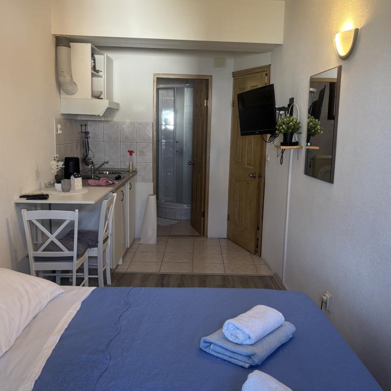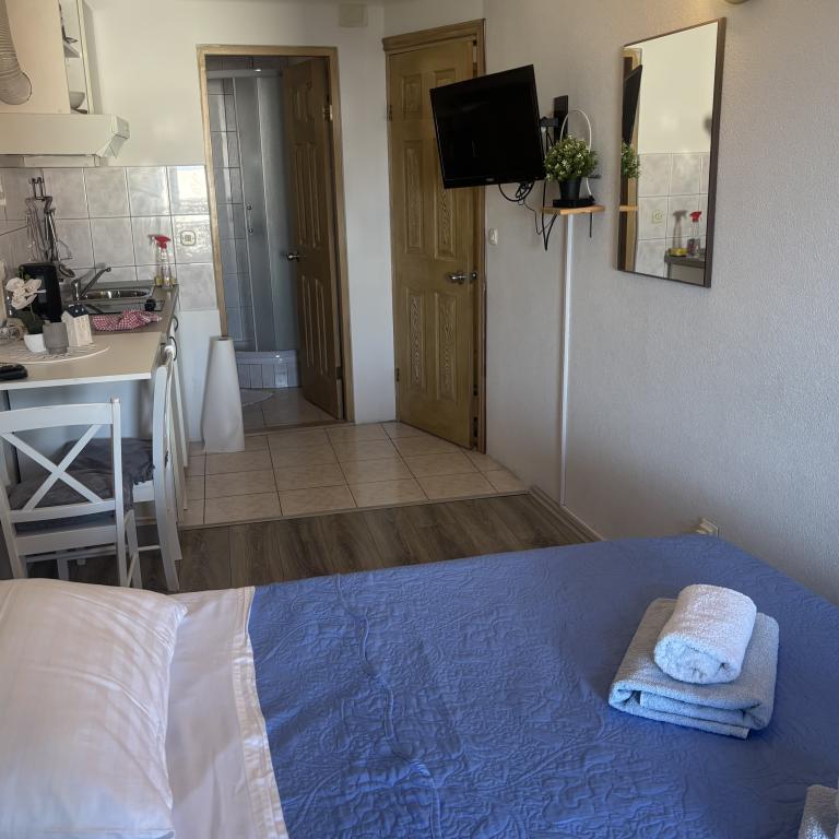 Apartamentele Sara sunt situate într-o locație perfectă, iar studioul nostru unde am rămas a fost superb. Aveți o plajă pentru un minut, iar la plajă aveți șezlonguri și umbrelă. Chiar lângă plajă aveți o cafenea și doar câteva minute de mers pe jos de restaurantul de pe plajă. Plaja este curată și marea este curată. De asemenea, în apropiere este o brutărie și o brutărie bine aprovizionată, deci în esență aveți totul de bază. În unitate aveți tot ceea ce aveți la bază, fier, păr, prosoape și totul este curat și curat. Hostess-ul Ariela este o femeie genială care vă va întâmpina și vă va fi la dispoziție pentru toate nevoile dvs. În mod esențial vă simțiți acasă. Într-adevăr, toate laude și recomandare pentru această cazare. Veți dori să reveniți din nou