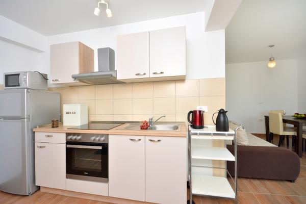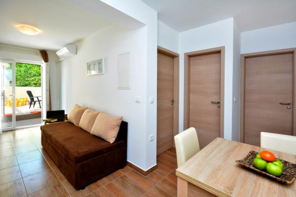 apartament modern nou construit este format din 2 dormitoare, living mare, bucătărie și o terasă însorită de 50m2, cu toate facilitățile. Apartamentul va satisface toate așteptările dumneavoastră pentru o vacanță plăcută.