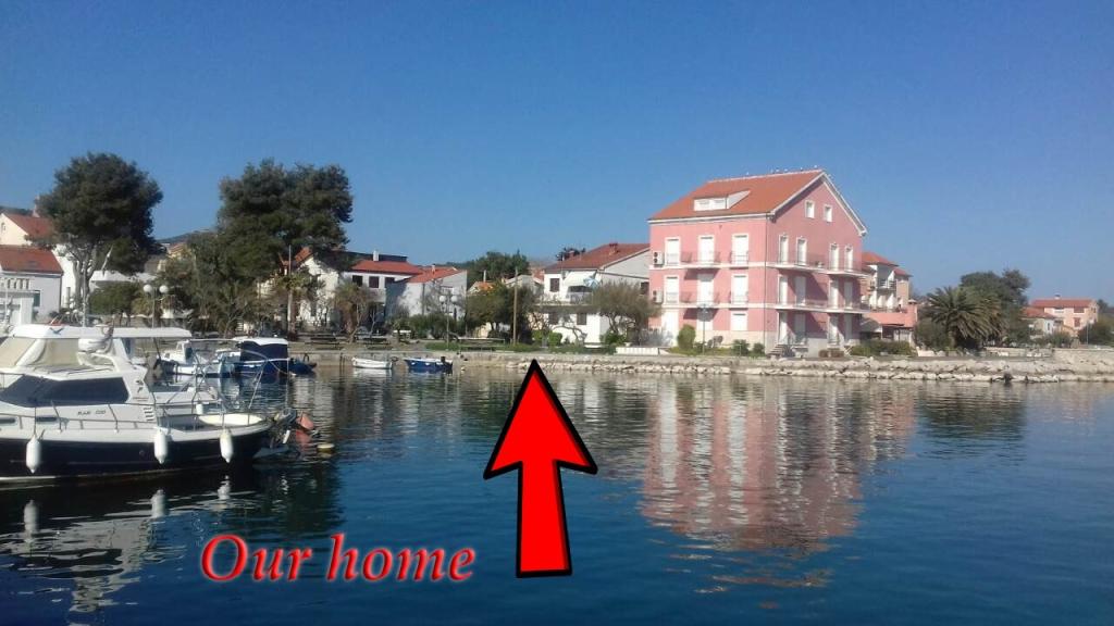 Dragi oaspeți, cu prețuri speciale pentru luna iunie, relaxați-vă în casa noastră de vacanță, situată la doar 10 metri de mare. Acolo puteți înota sau vă puteți plimba de-a lungul frumoasei promenade de-a lungul mării până la o plajă cu pietriș mai mare, la aproximativ 30 de metri de casă. Lângă casă se află un parc frumos amenajat, cu bănci pentru relaxare și odihnă. În apropiere (la aproximativ 20-50 de metri) se află un restaurant, o pizzerie, un mic loc de joacă pentru copii și un supermarket. Casa are o bucătărie (aragaz cu cuptor, fierbător, mașină de spălat vase, frigider) cu sufragerie, un living cu o canapea extensibilă (pat pentru două persoane) și TV prin cablu, o baie și un dormitor cu un pat de 140x200. O scară interioară duce la primul etaj, unde se află două dormitoare (unul cu un pat de 160x200 și celălalt cu două paturi de 90x200), o baie cu mașină de spălat și o terasă cu zonă de relaxare, de unde se poate admira vederea la mare, orașul Zadar și insulele din apropiere. WiFi este gratuit în întreaga proprietate, iar parcarea este disponibilă în zonele publice.