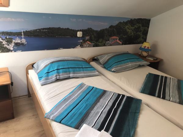 apartamente moderne în centrul parcului naţional, 50m de la mare si 300m de la lac. Casa de oaspeţi este situată într-o zonă liniştită Pomena 150 m de hotel. Oferim oaspeţilor noştri home-made eco-food, foarte gustoase şi sănătoase, care este preparat din alimente. Micul dejun cu un restaurant au o tradiţie de peste 40 de ani. Din 1.10.do 1.6. Va oferim aranjamente specializate (de pescuit, colectarea de struguri, masline, care lucrează în domeniul produselor de home-made, etc). Oaspeţii pot lua micul dejun sau jumătate de bord serviciu la preturi excelente.