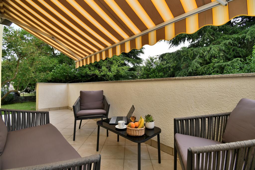 Ne aflăm în zona turistică Poreč, așezarea Špadići.Apartamentul nostru este format din 2 dormitoare cu paturi duble, bucătărie și sufragerie, hol și baie cu duș, toaletă și bideu. Apartamentul are tot ce ai nevoie pentru a face din vacanta ta o adevarata vacanta. Este disponibilă toată lenjeria de pat, precum și ustensile complete pentru mâncat și băut, frigider, aparat de cafea, aragaz electric, cuptor cu microunde, TV cu recepție prin satelit și în plus aveți acces gratuit la internet cu utilizare nelimitată. In fata apartamentului se afla o terasa cu masa si scaune, care este protejata de un copertina de soare. La capătul terasei, puteți folosi și grătarul, pe care îl puteți obține la cerere. Apartamentul Brijuni este situat la numai 300 m de plajele frumos decorate ale mării limpezi, unde există și magazine, restaurante, cafenele, pizzerii etc. Centrul părții vechi a orașului Poreč este la aproximativ 800 m distanță, desigur că nu aveți nevoie de mașină, pentru că puteți merge cu ușurință până la aproximativ 15 minute sau puteți folosi micul tren turistic.