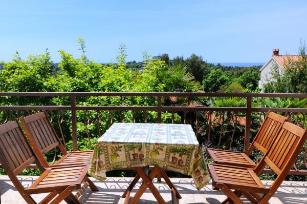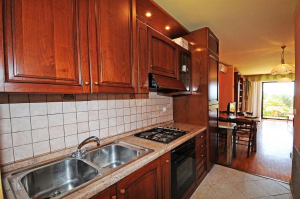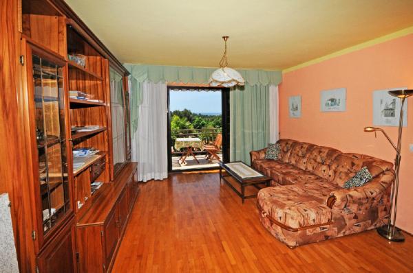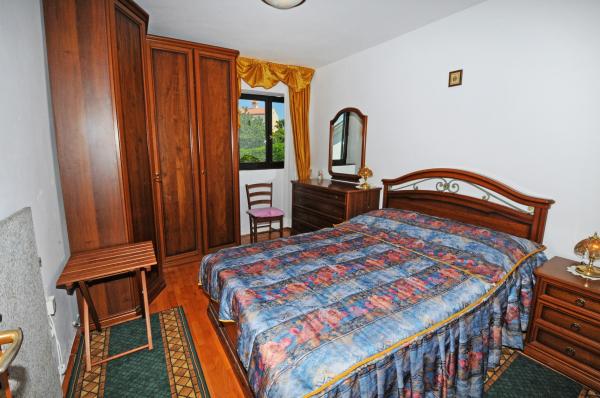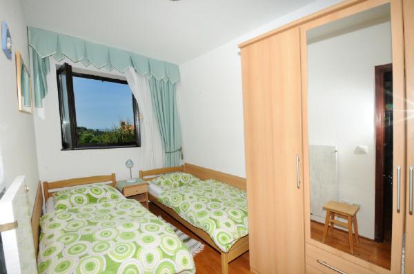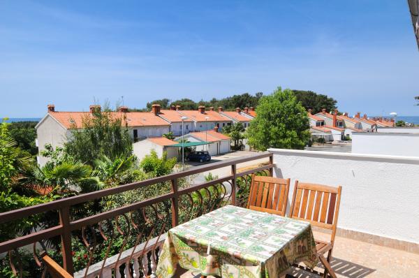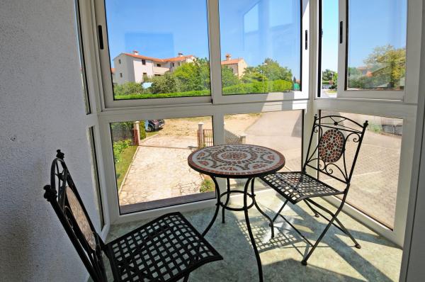 Apartamentul este situat la primul etaj al unei clădiri, înconjurat de verdeață într-o parte liniștită din elita Porec, deasupra centru sportiv Hotel Diamant. Apartamentul mobilat confortabil constă dintr-un living spatios, dormitor mare și mic, terasă, balcon inchis, bucatarie, baie cu duș și toaletă, și un hol. Din camera de zi, terasa si dormitor mai mic are o vedere frumoasă la mare. Restul apartamentelor care se confruntă gradina proprie frumos amenajata cu pomi fructiferi și flori în grădină este propriul spațiu de parcare mobil gard protejat pentru o masina. Este nevoie de doar o plimbare de zece minute prin umbra pinilor pentru a ajunge la plajele cu steag albastru. Există, de asemenea, un centru de sporturi acvatice (parasuta, banana, tuburi, etc). La o distanță de numai 2 km de apartamente a deschis recent un parc acvatic mare Aquacolors Porec.