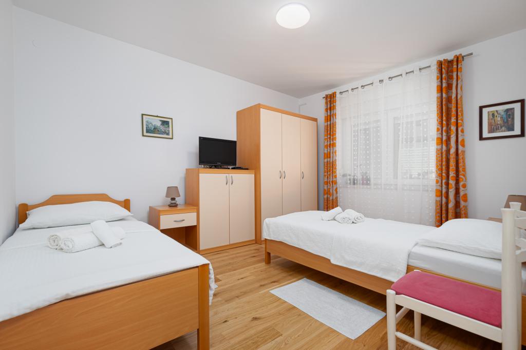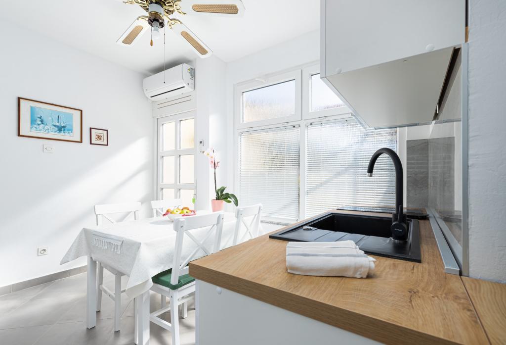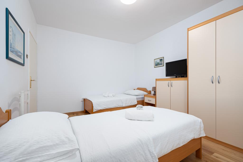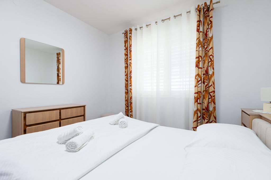 Apartamentul este mobilat cu gust și poate găzdui până la patru persoane. Este format dintr-o zonă de living, o bucătărie complet utilată, o masă, un dormitor dublu cu pat dublu și un dormitor cu două paturi de o persoană cu TV cu ecran plat și o baie. In fata apartamentului, intr-o atmosfera foarte placuta, se afla o zona de relaxare. Pretul de inchiriere a apartamentului include utilizarea: lenjerie de pat, prosoape, Wi-Fi si aer conditionat.
