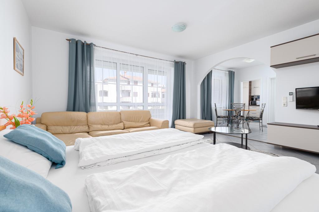 Citește mai mult Unități de cazareCondiții suplimentare Depozit la sosire: € 100.00 Conectati-3 € dată pe oaspeți Clima: 5 € pe zi Curățarea: Clientul trebuie să curețe înainte de a părăsi apartamentul, indiferent de curățenia finală. Plata în kuna HRK în conformitate cu lista de preturi de la recepție.