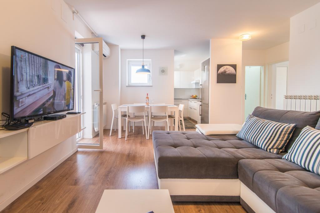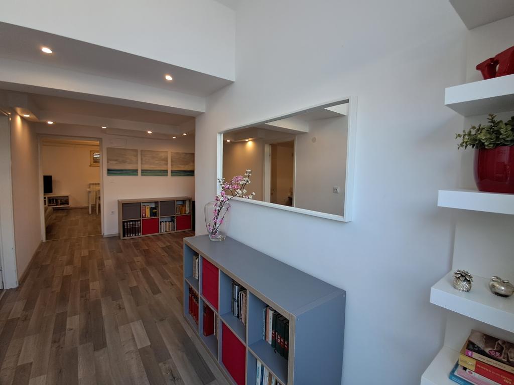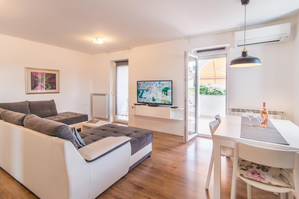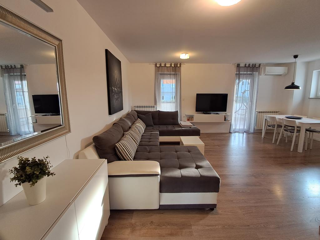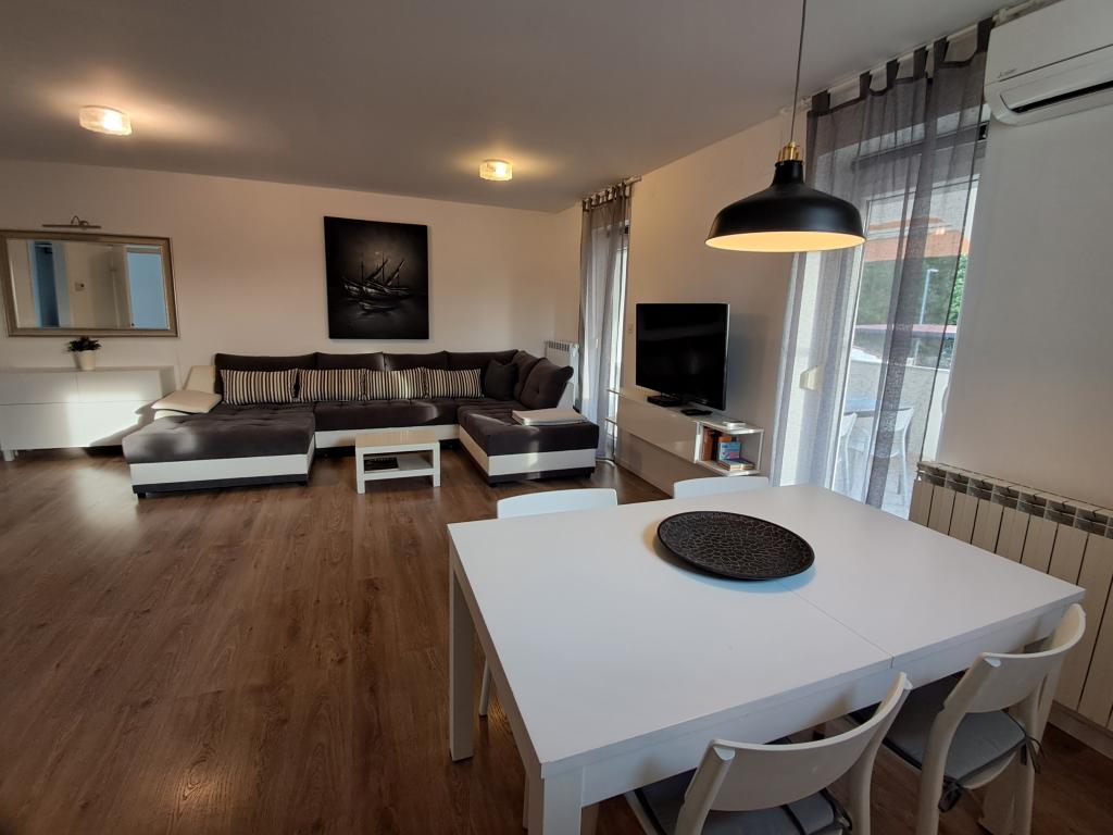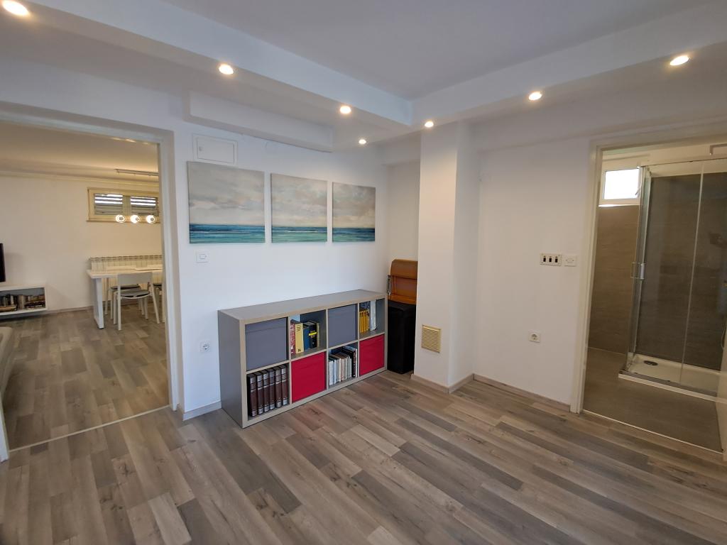 Mi-ar recomanda acest apartament din cauza dimensiunii lor, locația și accesul la soare tot timpul. Apartamentul este situat la ultimul etaj, ceea ce face acolo tot cald timp. Ea are un balcon pe care puteți petrece timpul până la sfârșitul ore ale serii. De asemenea, ținând dus poate lua plaja deoarece fereastra mare în acoperiș este peste cabina. Camera este complet echipat. Zona linistita si calma. La mare și orașul 5-10 minute de mers pe jos de supermarketuri Lidl sau Konzum 2 minute de mers. Vecinii politicos frumos, Posibilitatea de a parca în apropierea casei sau parcare în interiorul. Pret foarte accesibil pentru astfel de condiții. Vă recomandăm vacanță înainte de sezonul turistic, care este la fel de cald și mai ieftin. Cu mare dorință de a reveni acolo data viitoare.