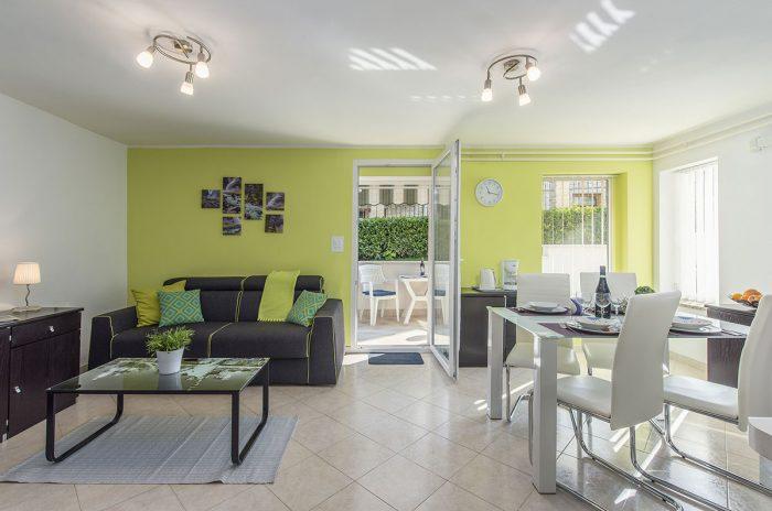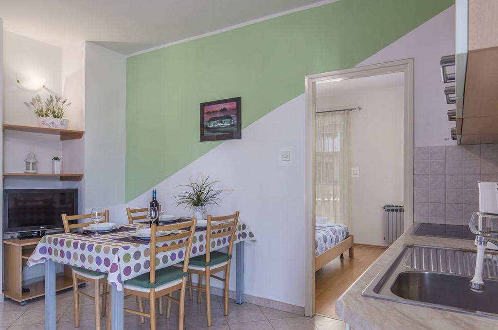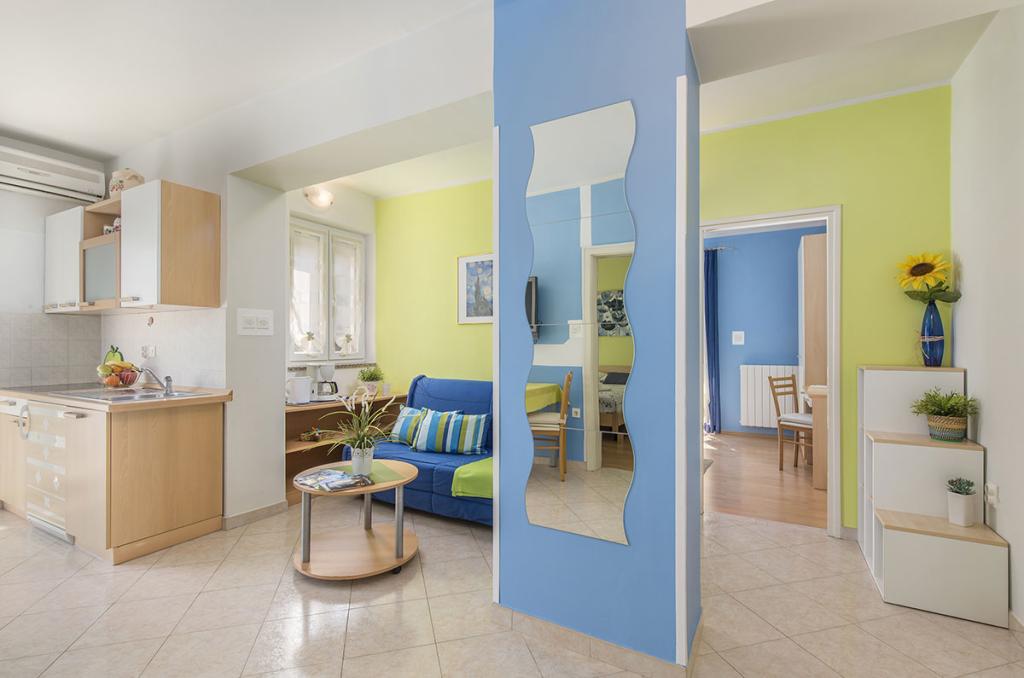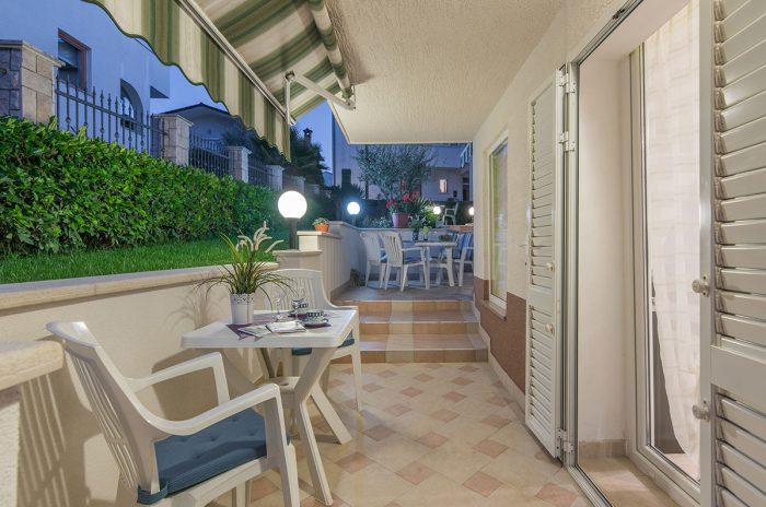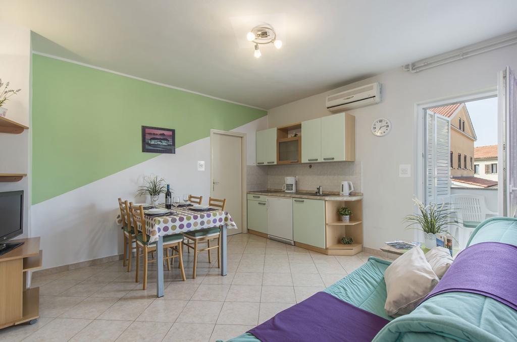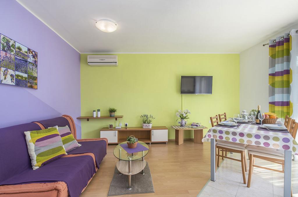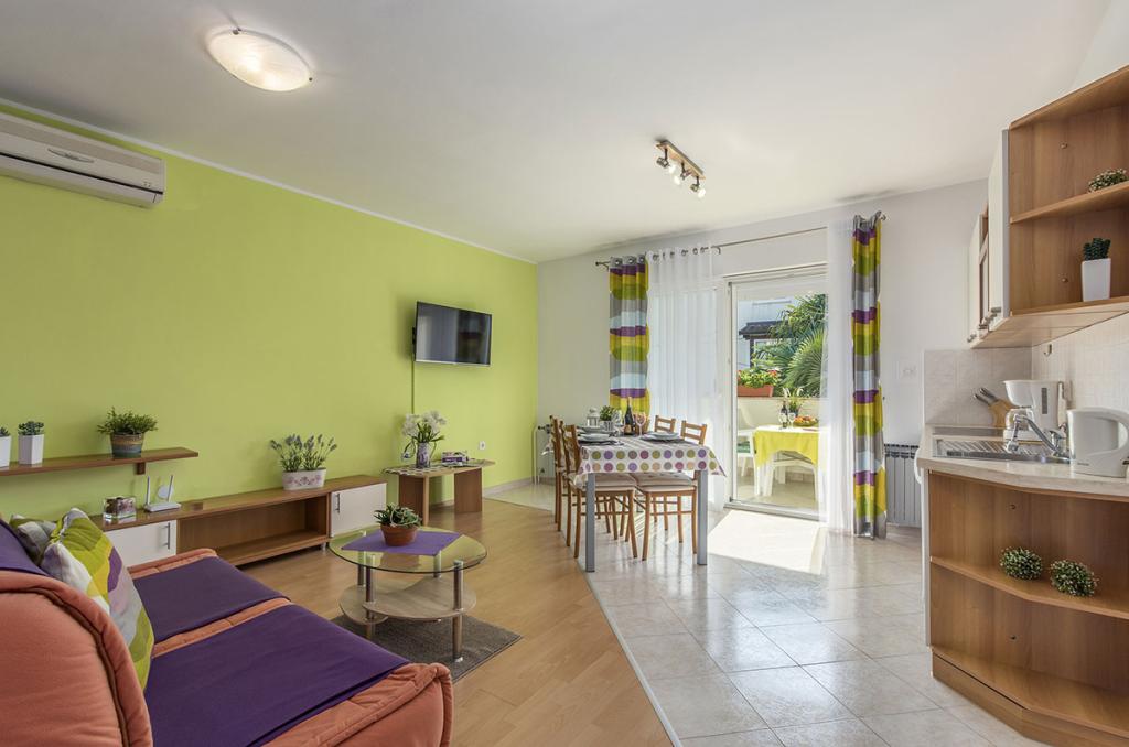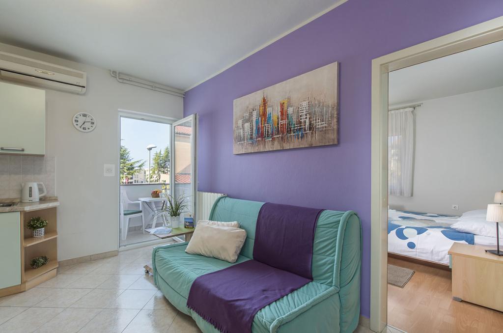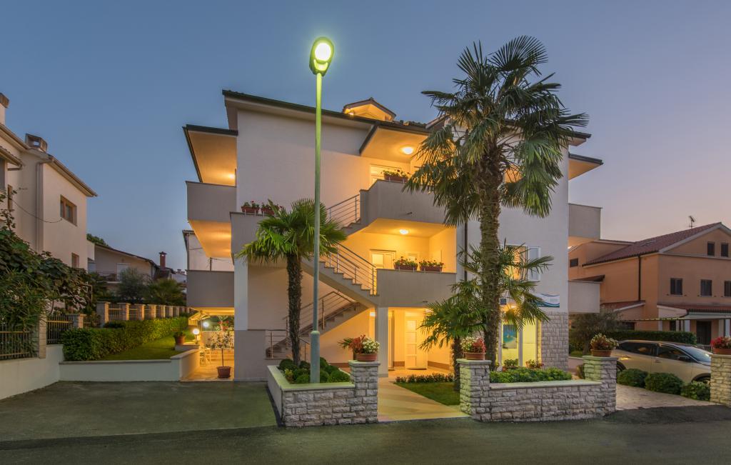 Apartamentele sunt situate într-o zonă liniștită din Poreč, la 5 minute de mers pe jos de plajă. La 50 m există magazine, mai multe brutării, 5-6 restaurante, terenuri de tenis și alte facilități sportive. Centrul vechi al orașului se află la 15 minute de mers pe jos, de-a lungul promenadei de-a lungul mării sau cu trenul turistic care circulă pe tot parcursul zilei.
