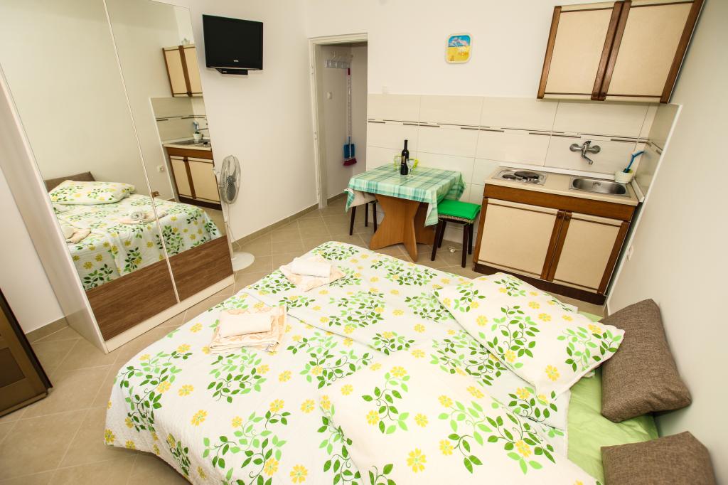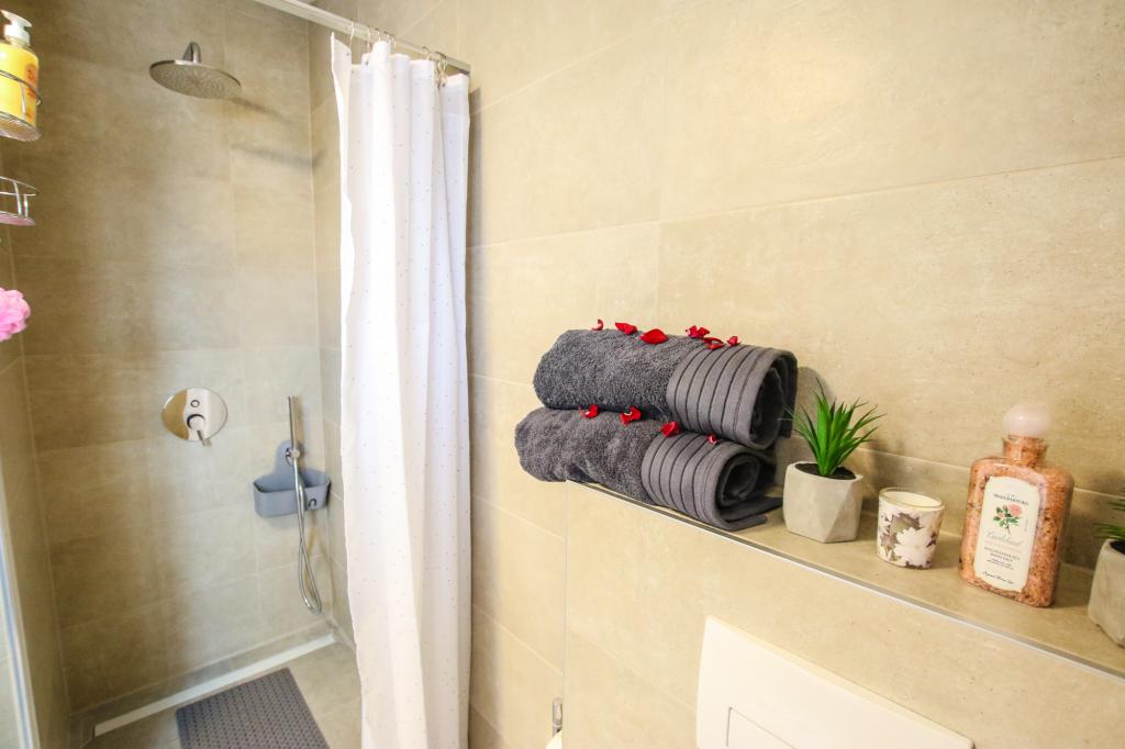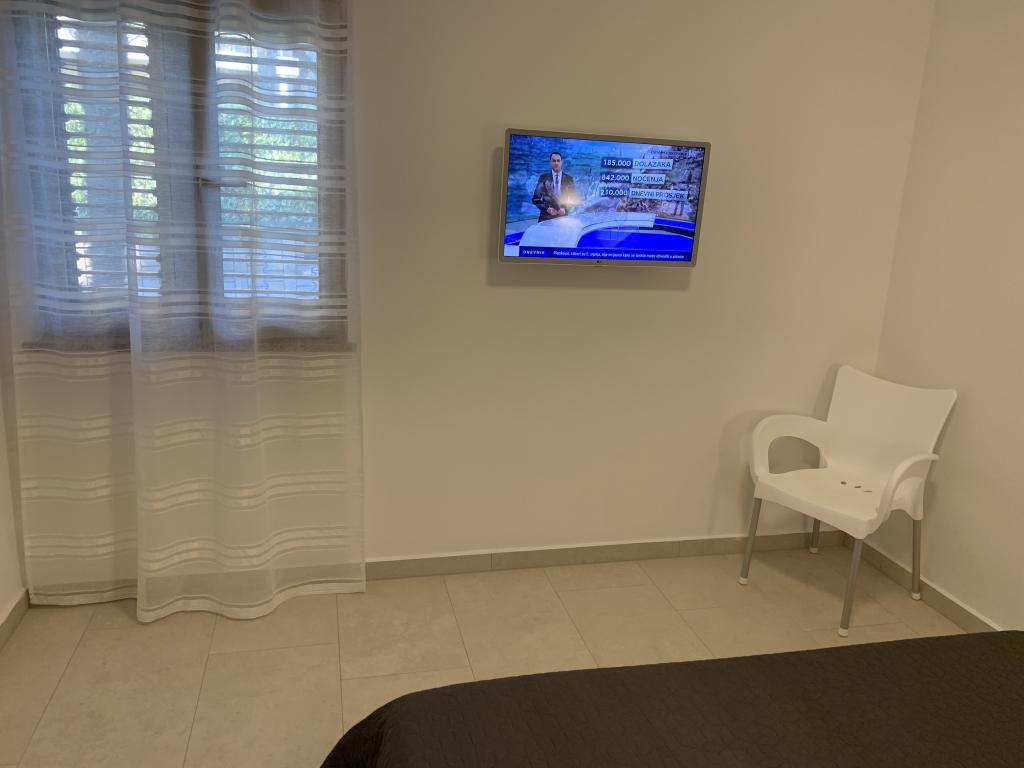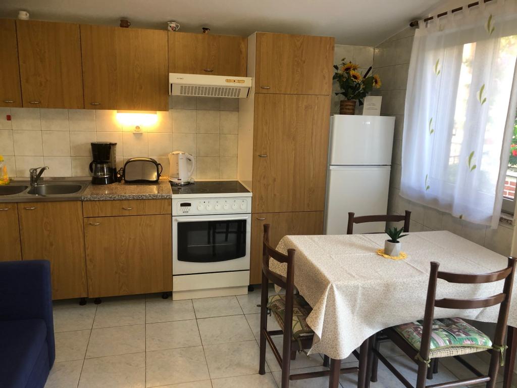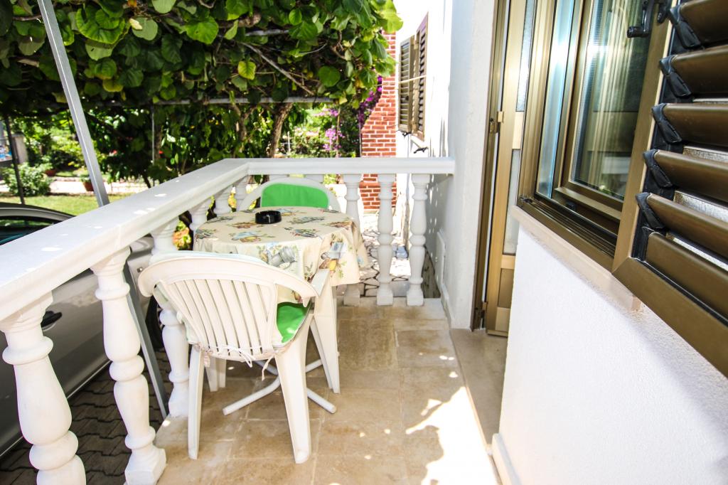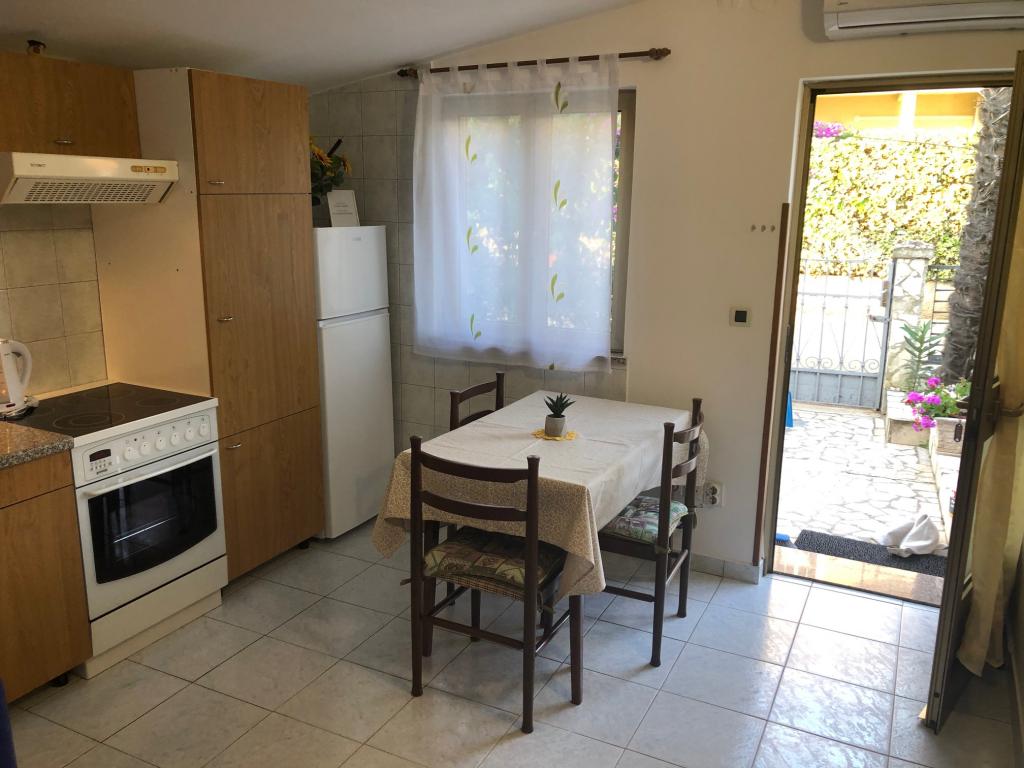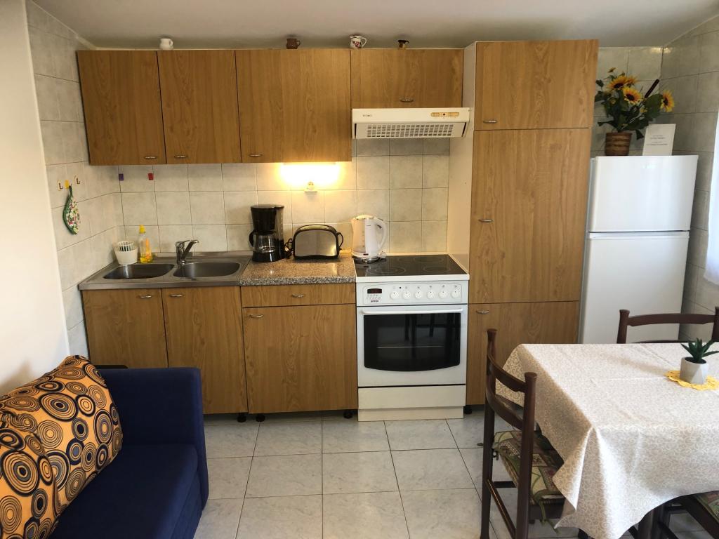 Apartamentul este situat la primul etaj cu o vedere frumoasă la mare Intrarea chiar în apartament te lasă fără suflare, deoarece deja priveliște te scapă pe terasă și priveliște Apartamentul este dotat modern cu un dormitor cu pat dublu 180 x 200, TV prin satelit, seif, baie cu duș, mașină de spălat, bucătărie cu balcon, mașină de spălat, TV prin satelit și o vedere frumoasă În apartament aveți o mașină de cafea, ceainic, uscător de păr, fier de călcat și parcare