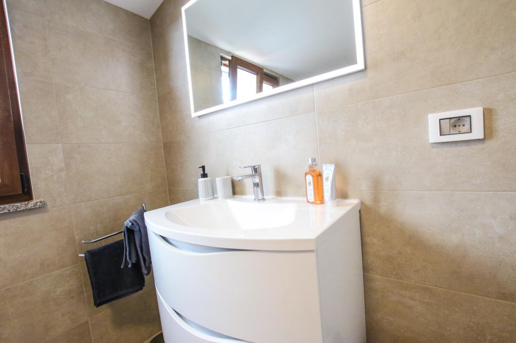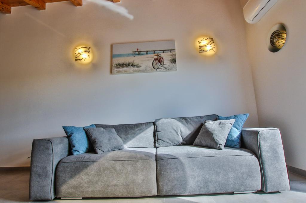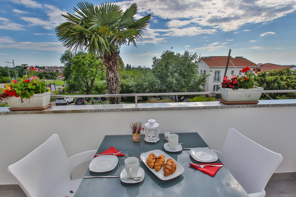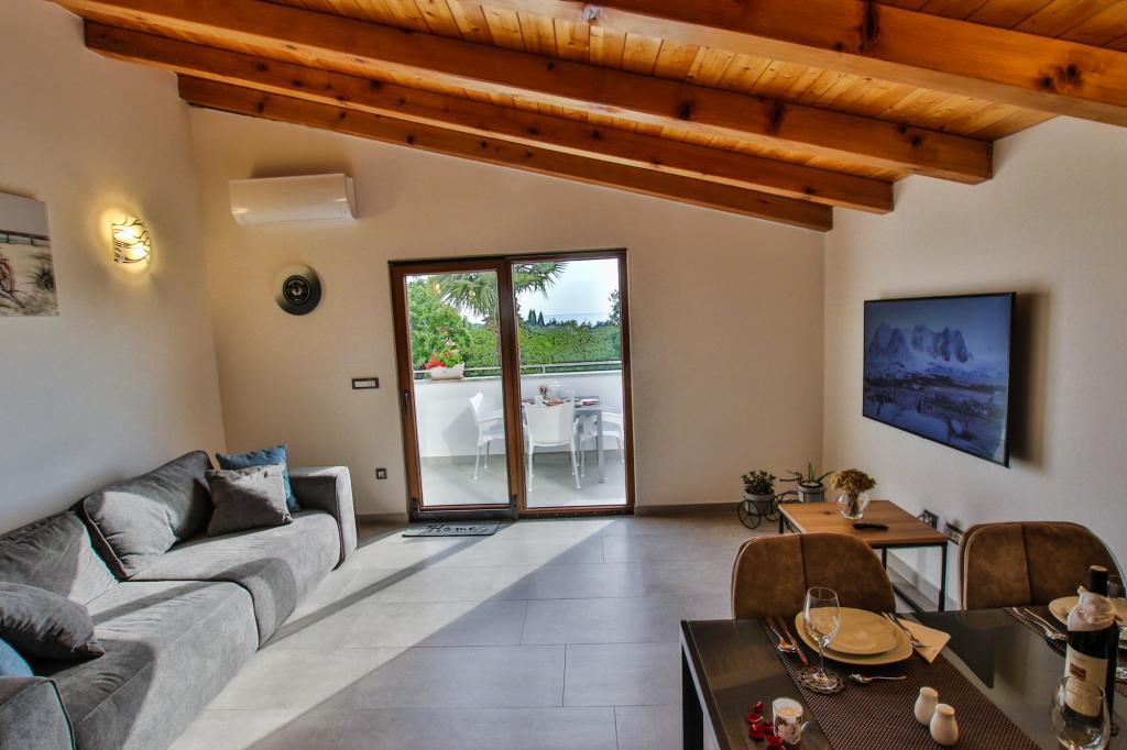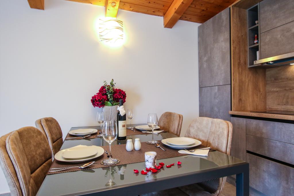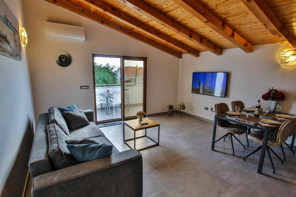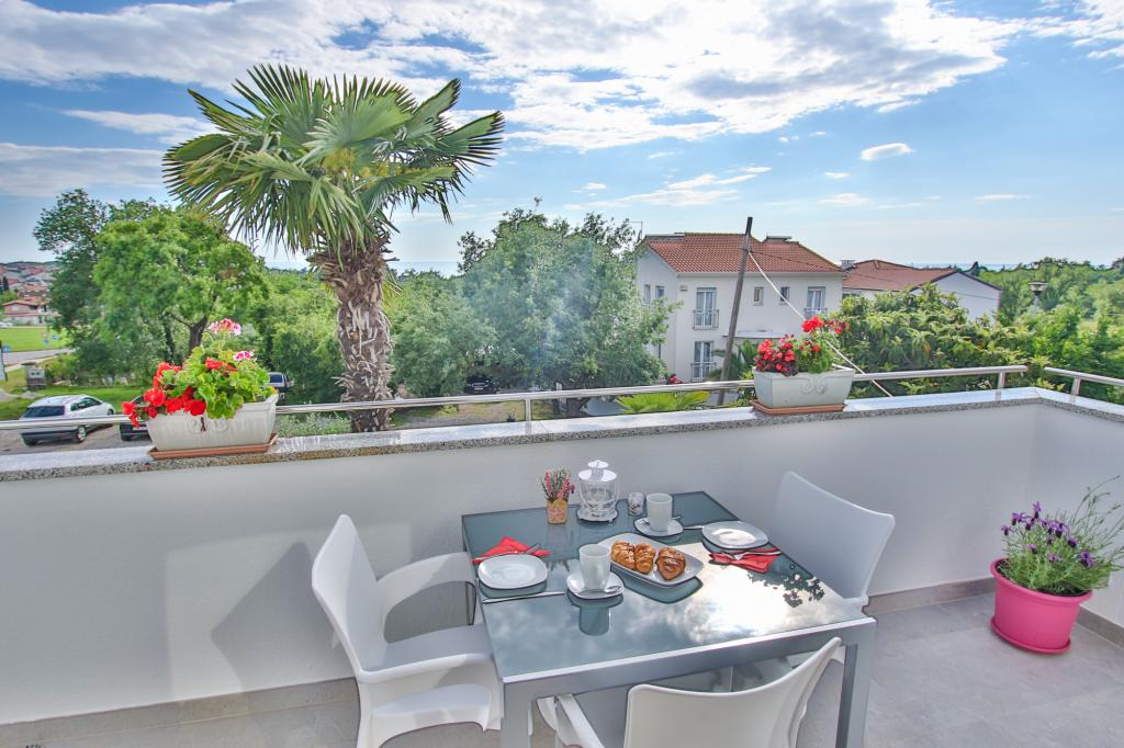 Apartamentul este situat la primul etaj cu o vedere frumoasă la mare Intrarea chiar în apartament te lasă fără suflare, deoarece deja priveliște te scapă pe terasă și priveliște Apartamentul este dotat modern cu un dormitor cu pat dublu 180 x 200, TV prin satelit, seif, baie cu duș, mașină de spălat, bucătărie cu balcon, mașină de spălat, TV prin satelit și o vedere frumoasă În apartament aveți o mașină de cafea, ceainic, uscător de păr, fier de călcat și parcare