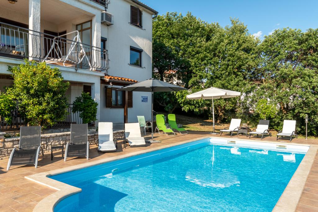 Bine ați venit la apartamentele Villa Verde. Ne aflăm într-un sat liniștit, la 10 minute de mers cu mașina de centrul orașului Porec. Bucurați-vă de aerul proaspăt și ciripitul păsărilor în timp ce vă relaxați în piscina de 32 m², înconjurată de stejari vechi de secole, pe un teren izolat de 3500 m². Apartamentele sunt complet echipate pentru un sejur relaxant într-un mediu natural. Apartamentele Villa Verde sunt destinate numai adulților. Vă oferim posibilitatea de a folosi grătarul cu toate echipamentele sale (vă pot ajuta cu lemnul nostru de casă și vinul și desertul istrian indigen). Oferim oaspeților noștri dragi ouă de casă din floricele noastre, pe care oaspeții noștri sunt încântați să le hrănească și recompensează-i cu ouă de casă. Sper că veți decide să rămâneți în apartamentele noastre și să vă bucurați de atmosfera relaxantă a unui sat tipic din Istria.