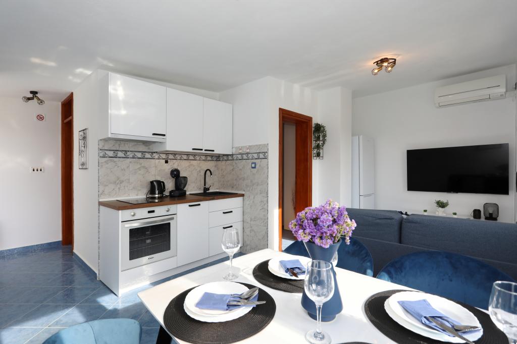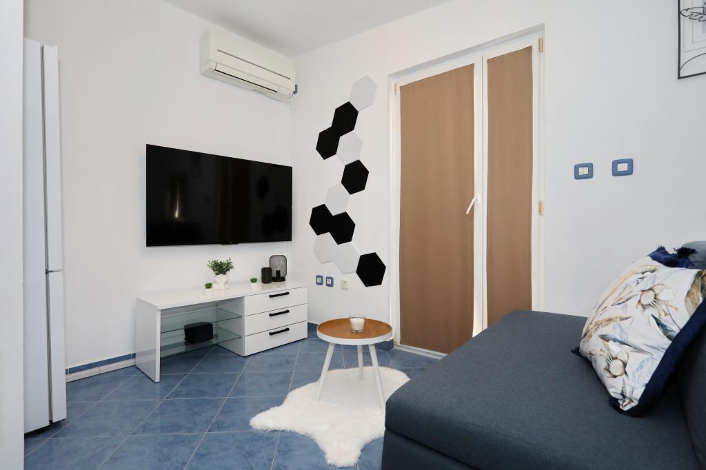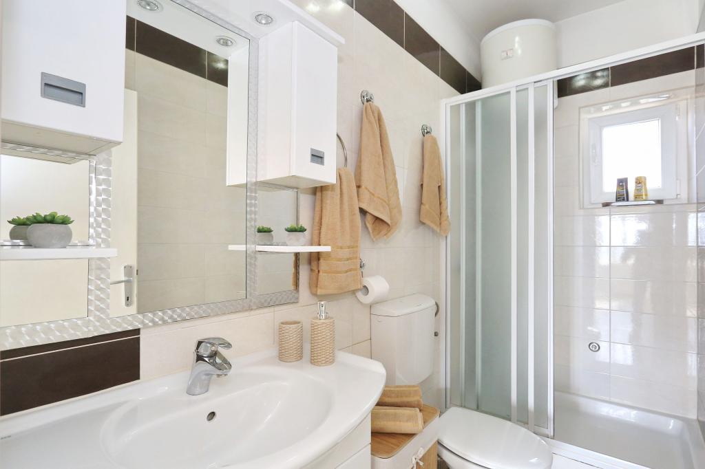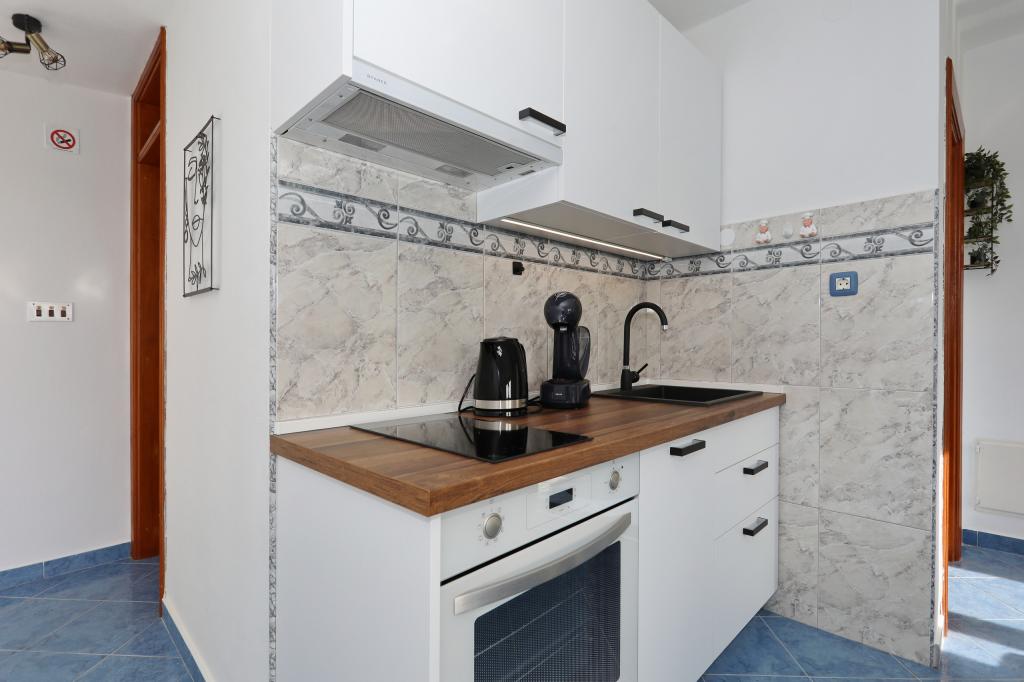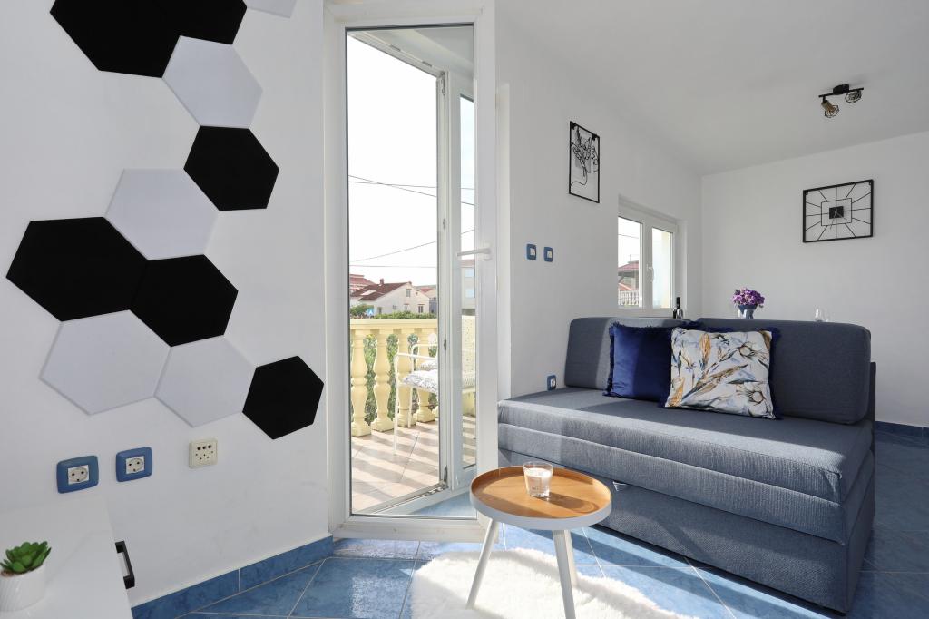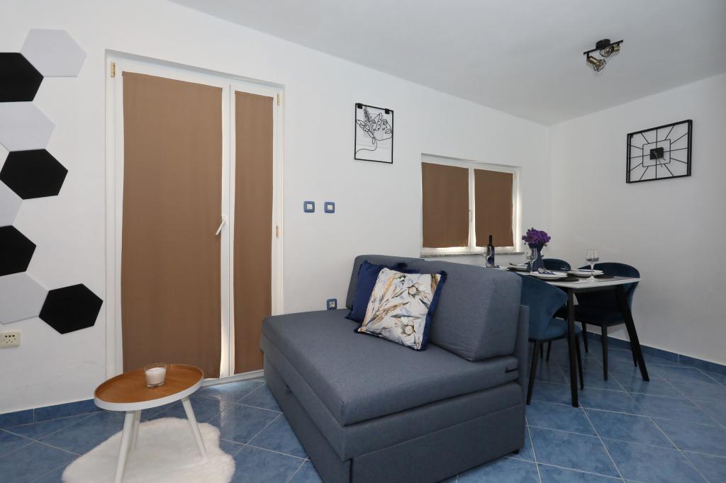 Apartament recent utilat modern, de 45 m2, cu balcon, în centrul orașului și parcare păzită în fața intrării în apartament. La doar aproximativ 5 minute se află magazine, brutărie, măcelărie, piață, farmacie, oficiu poștal, bancomat, restaurant și la aproximativ 5-8 minute cafenele, centru de sănătate etc. Distanța până la prima plajă cu pietriș și beton este de 5-8 minute, iar plajele cu pietriș și umbroase la 10-15 minute de mers pe jos. Disponibilitate de parcare pe plajă. Plajă cu nisip cu parcare păzită în vecinătatea barului de pe plajă, la 5 minute cu mașina. Orașul în sine oferă un frumos loc de excursii, Čelinka, și este situat în apropierea mai multor parcuri naționale: Zrmanja, Paklenica, Krka, Plitvice, Kornati etc.