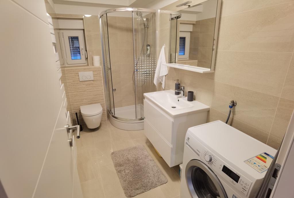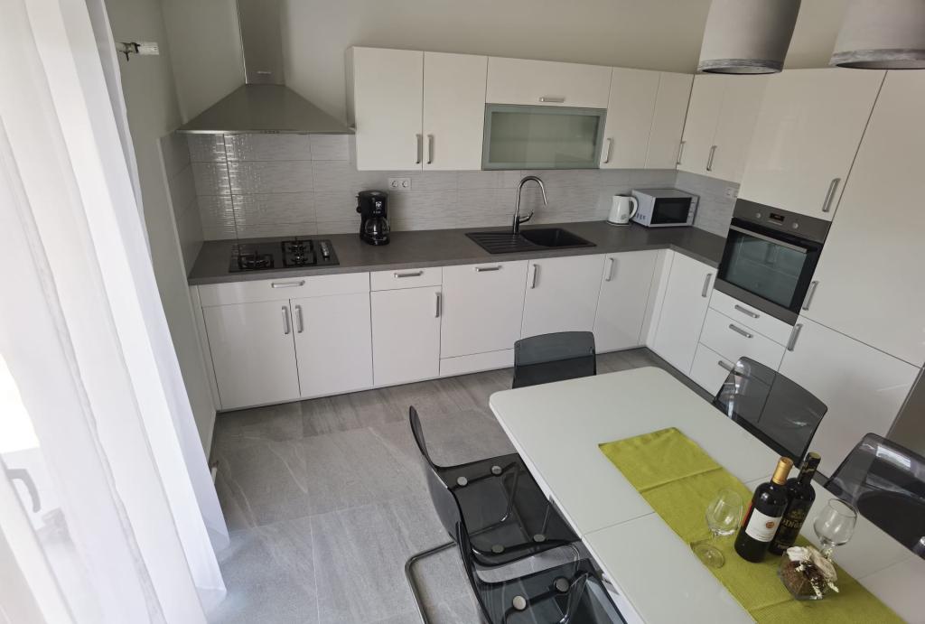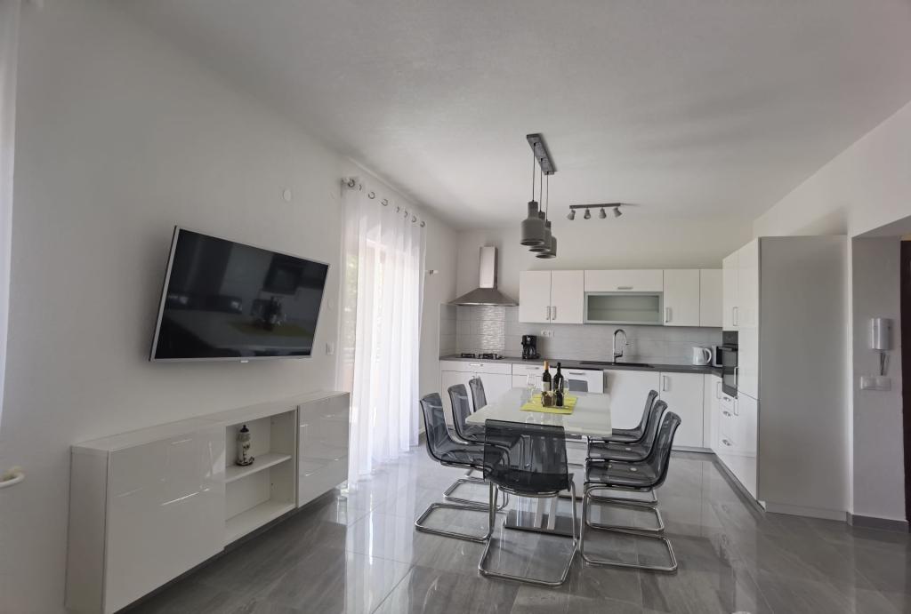 Apartamentul 6+2 este foarte frumos, spatios, mobilat modern, cu o terasa mare si vedere la mare, si aer conditionat si TV in fiecare camera. Dotările apartamentului sunt potrivite și pentru copiii mici, aceștia având și un pătuț portabil și scaun înalt. La sosire, în frigider erau o mulțime de băuturi reci de bun venit. Apartamentul a fost foarte curat si ordonat la sosire. Proprietarii au fost foarte prietenoși și de ajutor. Dacă mai aveam nevoie de ceva, ne aduceau și în plus. Este aproape de mare și de plajă - printr-o scurtătură - dar o parte din potecă este nepotrivită pentru a conduce cu un cărucior pentru copii, ceea ce a fost singurul dezavantaj pentru noi. Recomandat pentru familii numeroase sau grupuri de prieteni.