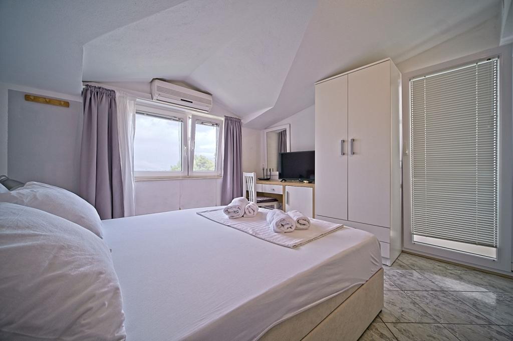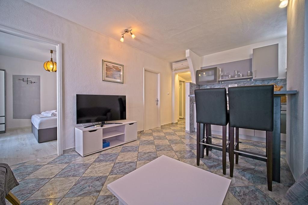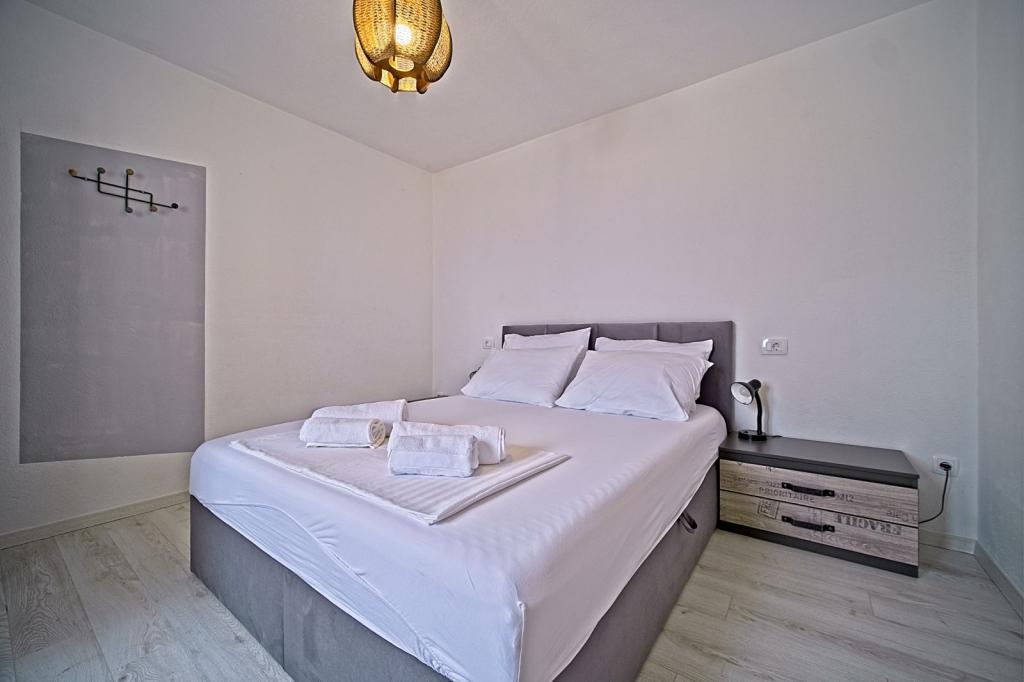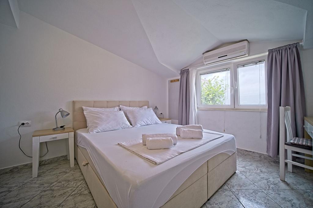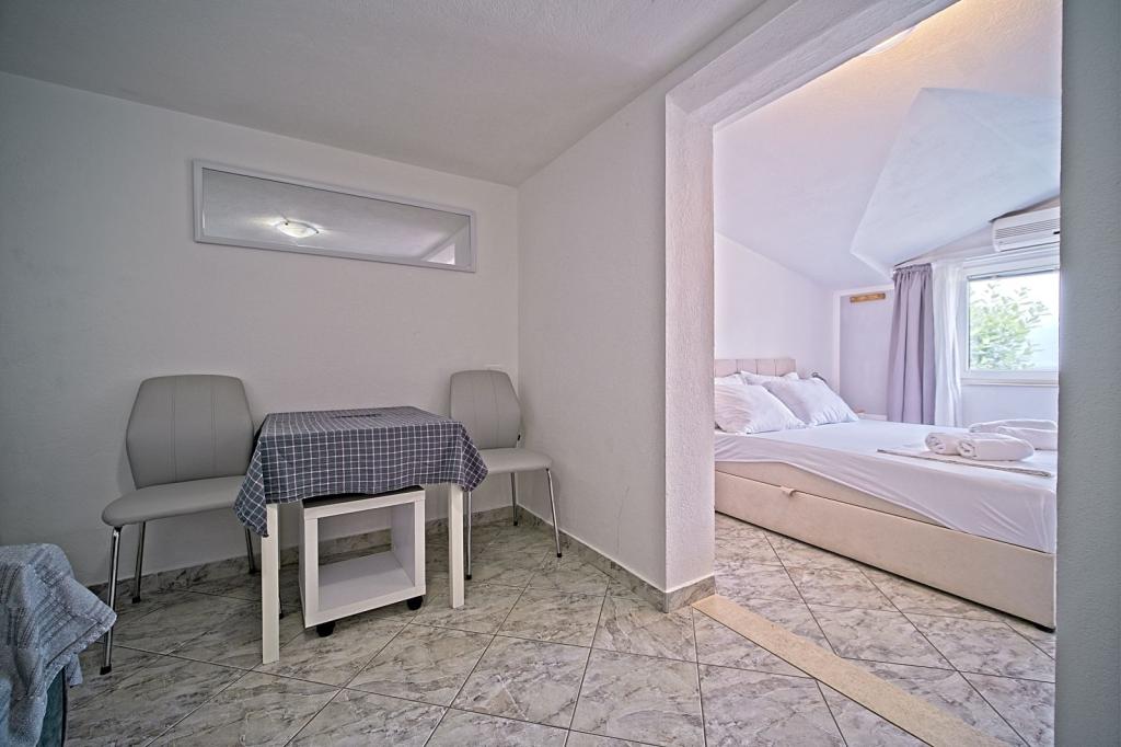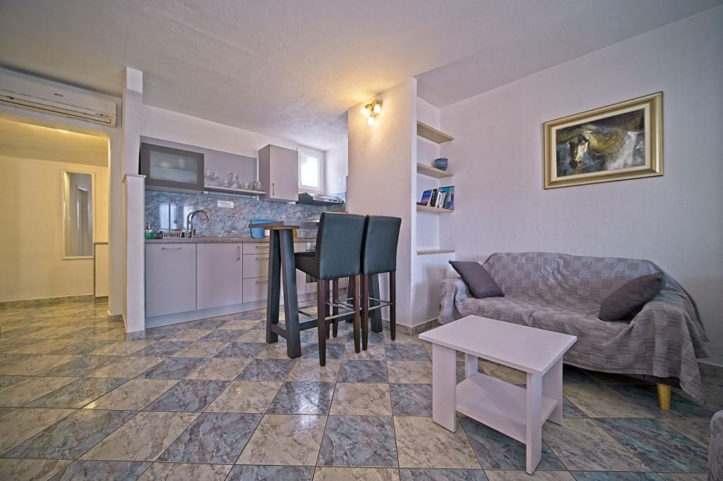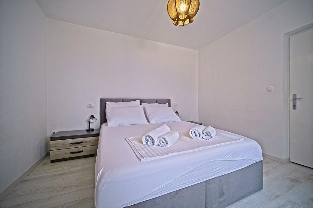 Situate în primul rând lângă mare, apartamentele oferă amestecul perfect de confort și stil modern. Acestea sunt situate într-o casă de familie renovată și complet utilată, unde vă puteți bucura de apropierea de mare și de priveliștea încântătoare. Va oferim doua locuri de cazare unice: un apartament spatios 2+1, ideal pentru o vacanta in familie, si un apartament fermecător pentru doua persoane. Fiecare apartament este dotat cu aer condiționat gratuit, TV prin satelit și internet Wi-Fi.