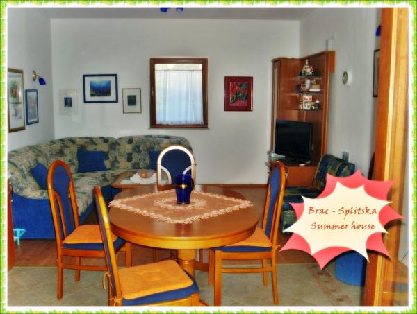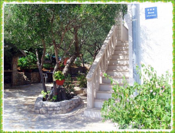 Apartamentele sunt situate în orașul mic de Split, în apropiere Postira. Casa este înconjurată de plantații de măslini și este ideal pentru vacanțe de familie, și este situat la 100 m de mare și aproape de toate facilitățile. 2 apartamente la primul etaj, și cea mai mare pe teren și înconjurat de o grădină mare. Toate apartamentele au o terasă și o vedere deschisă la mare.