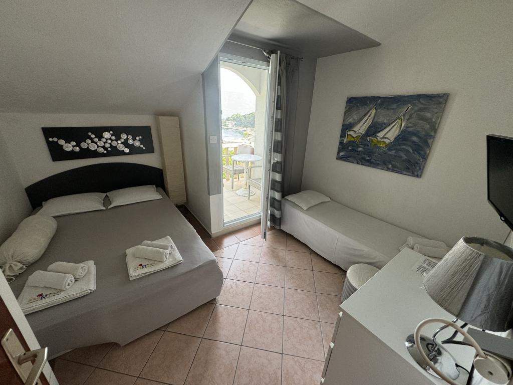Apartamentele sunt situate la 200 m de centrul orașului, în golful „Tićja luka”, într-o zonă liniștită, înconjurată de verdeață. O plajă stâncoasă și cu pietriș se află la 50 m de unitate. Nu sunt aglomerații și marea este limpede. Toate apartamentele au vedere la mare. Sunt dotate cu toate electrocasnicele, aer conditionat. Posibilitatea folosirii unui gratar mare de exterior. Sosirea este de la 14:00 iar plecarea este până la ora 10:00 (aranjament suplimentar posibil). Prețul include utilizarea lenjeriei de pat și a prosoapelor și curățenia finală. Taxa de rezidenta este inclusa in pretul apartamentului. La efectuarea unei rezervari este necesara efectuarea unui avans de 30% din pretul total. Insula este foarte bine conectată prin linii de feriboturi din porturile Split și Makarska. IMPORTANT: Preturile de sezon sunt pentru perioada din 15.06. pana la 15.09. Prețurile în afara sezonului sunt pentru perioada din 15 septembrie. până pe 15.06.