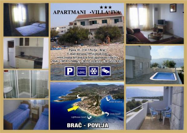 orașul Povlja găsesc un loc frumos pentru oamenii care caută pace. Vila Iva este situată direct pe mare. Apartamentul are o atmosfera potrivita pentru gratar. vila are o piscină frumoasă. În Povlja există suficiente posibilități pentru a face o vacanță activă, ciclism, înot, scufundări. Gazda este mai mult decât prietenoasă. Orașul are suficiente restaurante cu mâncare bună și proaspătă, viță de vie. Nu sunt până acum alte orașe frumoase, orașe. Pot să recomand acest apartament în Vila Povlja pentru.