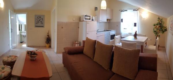 Apartamentul Oleander (51 m2) este format dintr-un spațiu deschis cu un living (pat suplimentar pentru 2 persoane), sufragerie și bucătărie, un dormitor separat cu un pat dublu (2 persoane) și o baie cu cabină de duș și toaletă. Există un pat dublu în dormitor și o canapea extensibilă în living, care poate fi folosită ca pat suplimentar pentru 2 persoane. Este situat la etajul 1, este dotat cu aer conditionat si are Wi-Fi. In curte se afla o gradina si o terasa (12 m2) potrivita pentru a petrece in aer liber cu un gratar. Terasa și grătarul sunt folosite exclusiv de oaspeții apartamentului și nu sunt împărțite cu nimeni, astfel încât aceștia pot petrece timp aici socialând, luând cina sau citind o carte printre plantele mediteraneene. Parcarea se afla langa bloc si este gratuita. Marea și plaja sunt la aproximativ 10 minute de mers pe jos, iar centrul orașului Povljana (magazine, cafenele, restaurante etc.) este la 5 minute de mers pe jos. Gazda se afla in apropiere si va sta la dispozitie daca este necesar.