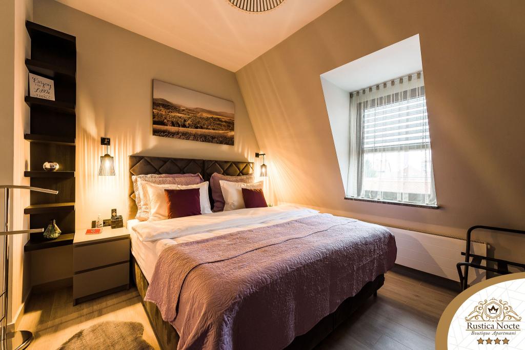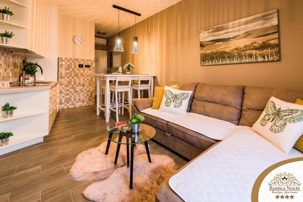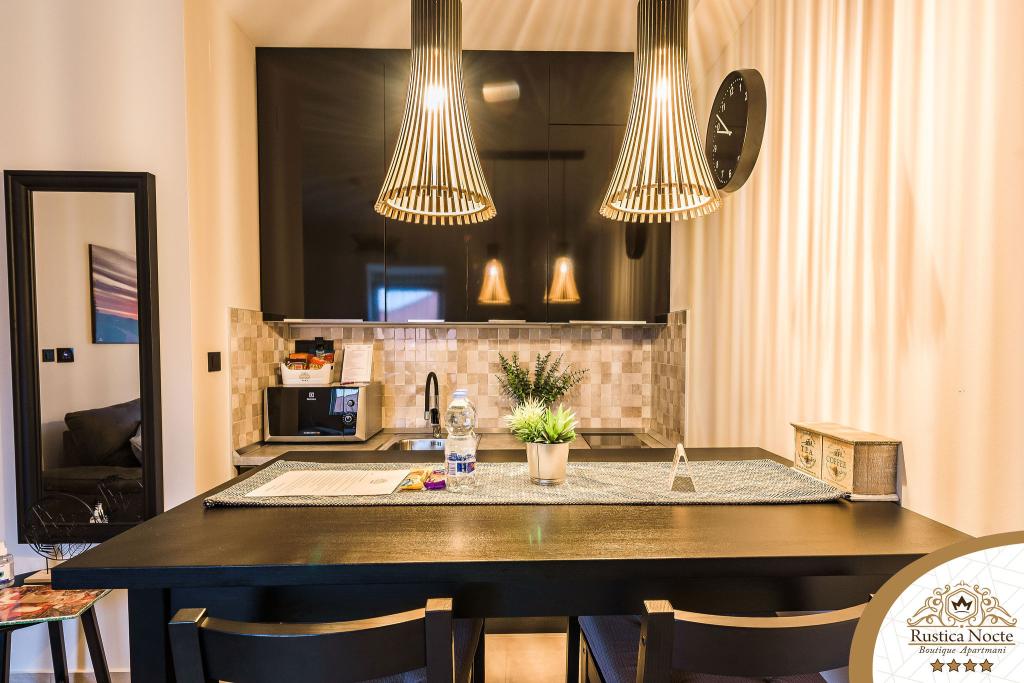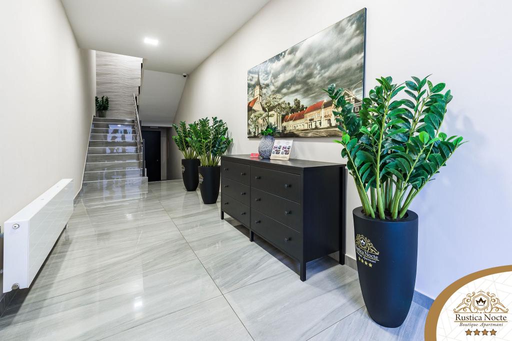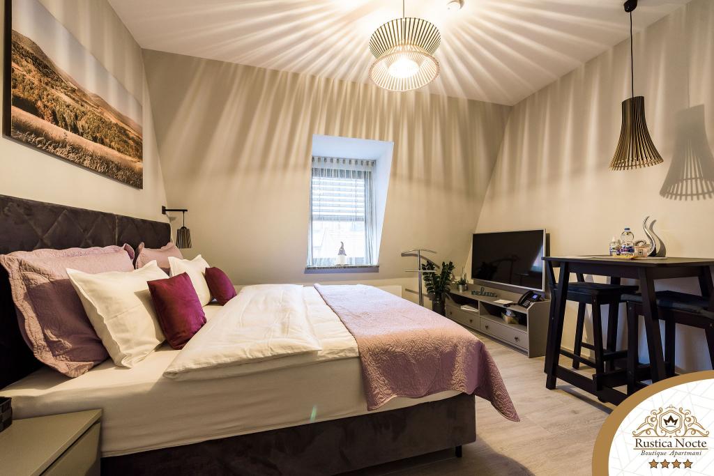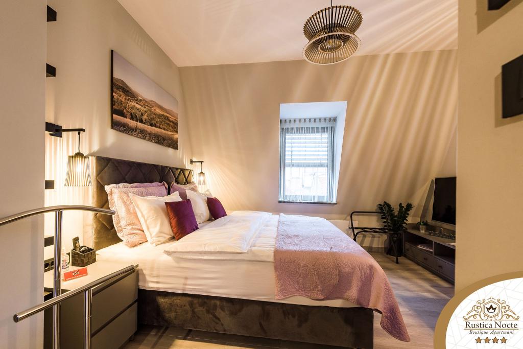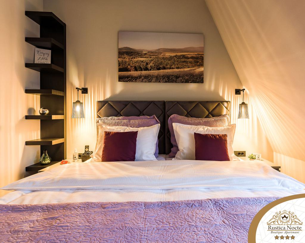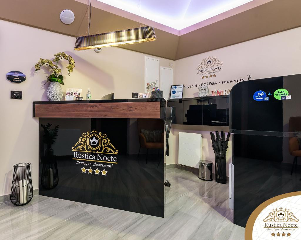 În chiar inima Slavoniei, la începutul zonei pietonale din Požega, apartamentele Rustica Nocte Boutique sunt locul perfect pentru o vacanță de vis. Pentru a vă face vacanța cât mai plăcută, apartamentele noastre moderne vă oferă dotări de cea mai bună calitate, și dorim în special să evidențiem sistemul de management inteligent pentru întregul apartament, Wi-Fi gratuit de mare viteză și Internet prin cablu și wireless, Paturi boxspring king size, seifuri digitale, televizoare ultra HD Ambilight Receptoare TV de 50 inch cu Netflix, programe prin satelit și locale și iluminare LED Ambilight la ferestre, băi ventilate și încălzite și bucătării complet echipate în fiecare dintre apartamente. Fiecare apartament include, de asemenea, un minibar cu băuturi nealcoolice și alcoolice și gustări. Apartamentele au și un colț pentru copii cu mese, jucării, cărți de colorat și saltele de joacă. Cu toate acestea, vă puteți planifica vacanța foarte fără griji.